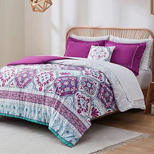 Return Policy Fast Delivery Trusted seller Full Size Complete Comforter Sets, Lattice Boho Bed in A Bag,Microfiber Bedding Set with Side Pockets, Matching Decorative Pillow, 8 Piece Purple Product Description All In One: Revitalize any bedroom with this complete bed-in-a-bag set. Update all at once, showcg your great taste in bedroom decor. Save by purchg as a bundle without shopping for each piece separately. 8 PIECES INCLUDED: 1 Comforter, 1 Decorative Pillow, 1 Flat Sheet, 1 Fitted Sheet, 2 Standard Pillowcase, 2 Standard Shams Boho Colors and Side Pocket: Our comprehensive bedding collection includes a comforter and sheet set available in a range of vibrant colors and stunning patterns, including Navy, Purple, Coral, and Aqua. Add a touch of brightness to your space with our bohemian medallion lattice floral design. The fitted sheet integrated side pockets, offering secure and convenient storage for items such as remotes and earphones. Cozy and Comfort: From the Linens to the Comforter, Pillowcases, and Accent Pieces, crafted in soft microfiber offers excellent durability and designed to maintain a fresh look for years. The gentle touch is ideal for year-round coziness. Premium polyester filling provides a breathable, relaxing feeling. This is certainly a bedding collection that will provide a restful and enjoyable sleep experience. Washing Instruction: Easily clean and care for your Degree of Comfort bedding set. Spot Clean for pillows. For other items, hand wash or machine wash cold and separately. For best results, wash with free and clear detergent at low temperature on gentle cycle. Do not bleach or iron. Shipping Returns Payment Shipping Shipping is FREE to all addresses other than APO/PO boxes in the lower 48 states. All our stock ships from US-based warehouses. Shipped via USPS or UPS (depending on location and package weight) Unless stated otherwise, all orders will ship within 24-72 hours of your payment being processed. Check our feedback to see the great reviews of FAST shipping we offer. Returns Seller does not accept returns Payment We currently accept payment via eBay managed payments only. Once payment is cleared, we will dispatch your shipment within 1-3 business days. Please refer to the "Shipping" tab for more information regarding shipping speed to your destination.
