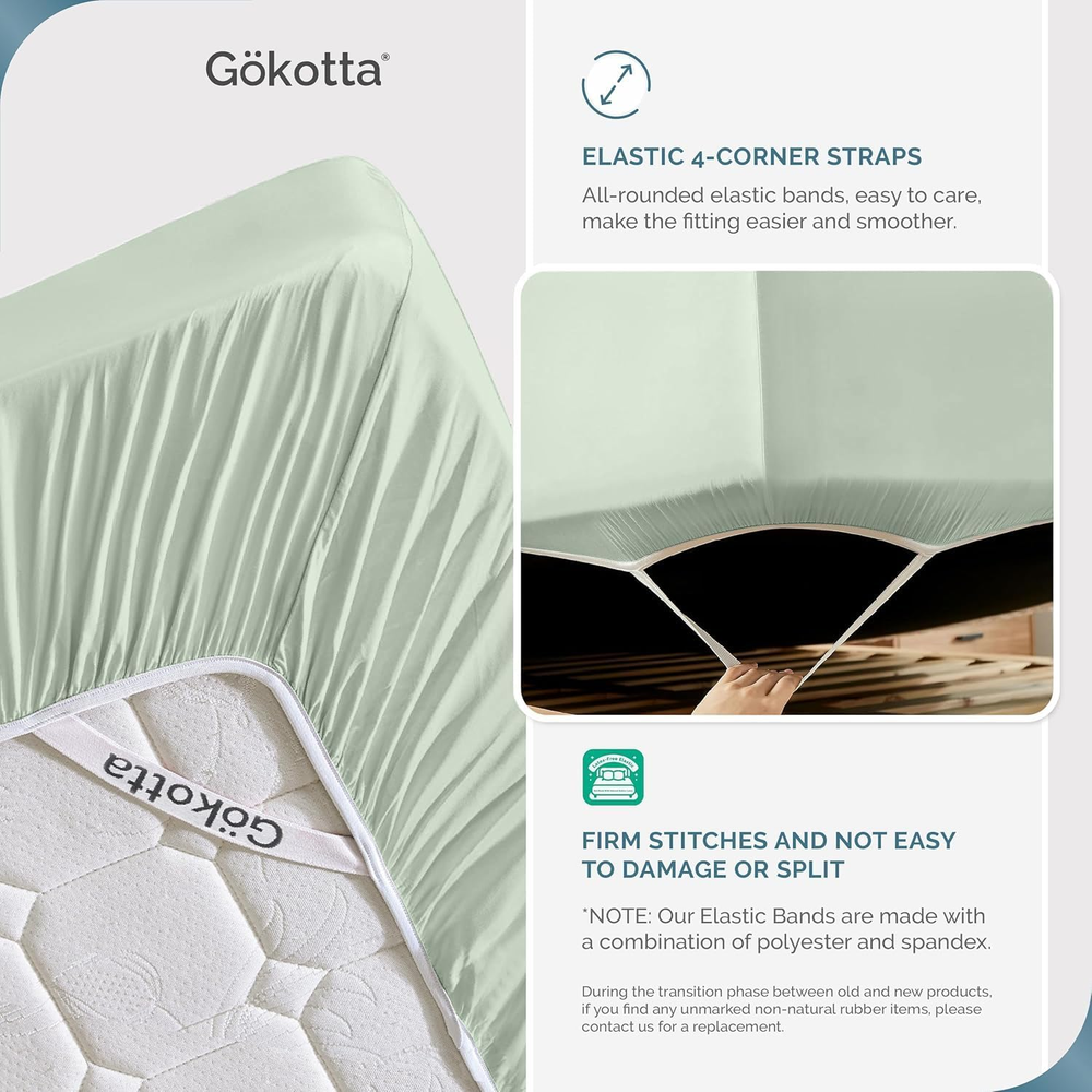 Store New Arrivals Add to Favorite View Feedback Contact Full Size Bed Sheets 4 Piece Set, 100% Rayon Derived from Bamboo, Cooling Sheets for Hot Sleepers - Hotel Luxury Silky Breathable Sheets, Deep Pocket up to 15" - Durable Double Stitched Description Item model number Bed Sheets Set Style Modern Weave Type Sateen Pattern Solid Country of Origin China Theme Solid Color Number of Pieces 4 Unit Count 4.0 Count Pillowcase Quantity 2 Material Rayon Derived from Bamboo Age Range (Description) Adult Seasons Winter Package Dimensions 12.56 x 8.11 x 3.82 inches Closure Type Envelope Item Weight 4.82 pounds Fitted Sheet Pocket Depth 15 Inches Special Feature Fully Elasticized Color 09 Sea Glass Thread Count 300 Included Components Flat Sheet Product Care Instructions Machine Wash Size Full 100% RAYON DERIVED FROM BAMBOO:Gokotta full size bed sheets are made of 100% bamboo rayon with 300 thread count, a premium quality fabric that is softer and smoother than silk. This natural material is hypoallergenic, naturally cooling, and breathable, making it perfect for a comfortable sleep experience ULTIMATE COOLING COMFORT & BREATHABLE SHEETS: These cooling bed sheets are thermo-regulating, keeping you cool and relaxed all night long, perfect for hot sleepers or those with sensitive skin. The moisture-wicking properties ensure year-round comfort, allowing you to indulge in luxurious softness with every wash 15'' DEEP POCKET PERFECT MATTRESS FIT: This full bed sheets set with deep pocket up to 15" which provides perfect mattress fit, not only that, we also design 4 highly elastic straps at the corners and all round elastic bands, which can effectively prevent wrinkles and shifting, and can always keep the bed tidy OEKO-TEX CERTIFIED: Gökotta’s fabric suppliers are certified to OEKO-TEX 100 standards, ensuring that the fabric and thread used in our products are rigorously tested for harmful substances and meet strict safety and environmental requirements Outstanding Customer Care:We offer a 90-day warranty service, so feel confident in your purchase and if you have any questions, please don't hesitate to contact us. Imported Product Description Deep Pocket Up to 16" GOKOTTA Experience Ultimate Comfort with GOKOTTA 100% Bamboo Rayon Sheets GOKOTTA Bamboo Rayon Sheets are Made from 100% bamboo rayon, without blending other fabrics, these sheets are highly breathable and cool to the touch, making them ideal for those with sensitive skin. The 300-thread count sateen weave provides a luxuriously silky feel , ensuring a truly restful night's sleep. 1 Sheets With Corner Straps 2 300 Thread Count 3 OEKO-TEX Certification 4 Ultra Soft Sheets 5 Size Chart Multi-color Real Shot Display 1 Multiple Color 2 Pillow Cases 3 Latex-free Elastic 4 Warm Tips ABOUT US We offer the best prices around on high quality products. Our E-store includes media such as books, movies, music and games while offering electronics, toys, sporting apparel, clothing, tools, general home, garden items and more. SHIPPING We are always working hard to ensure your package arrives as soon as possible. Please understand that some factors like weather, high postal traffic, and the performance of shipping companies are outside of our control. We offer free shipping to the lower 48 states and ship within 2 business days of payment, usually sooner. We do not accept P.O. Boxes. Please provide a physical address. For shipping outside of the continental USA, we only use eBay's Global Shipping Program.The item is shipped to KY and then sent to the rest of the world. International customers are responsible for all duties and taxes. Continue to check out in order to calculate costs for shipping the item to your country. Messages regarding eBay's Global Shipping Program MUST be directed at eBay EXCLUSIVELY. RETURNS We offer a 30-Day Return Policy on items which you are not completely satisfied with. You have the option for a full-refund or an exchange of the item. No returns are available on items shipped outside of the USA. PAYMENT We accept PayPal. CONTACT US This page content is yet to come Please ad us to your favorite seller and visit again later Thank You CUSTOMER SATISFACTION We try our very best to make sure every customer is completely satisfied. If there's a problem, message us! We're happy to help.