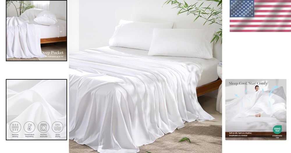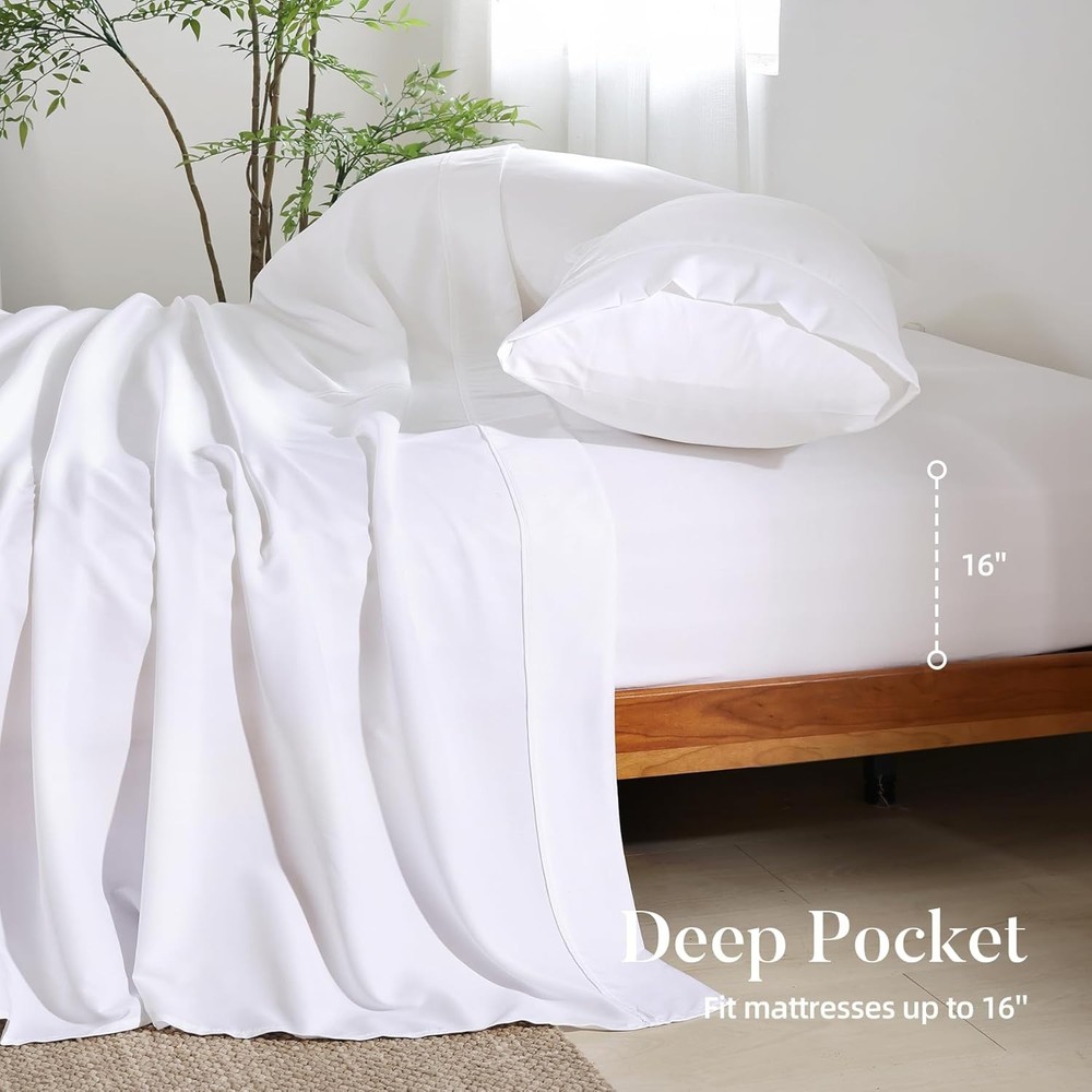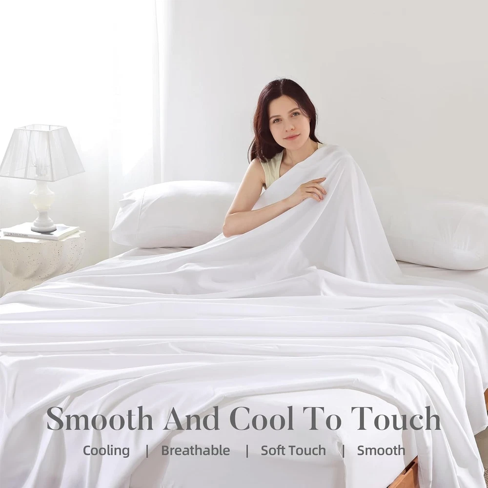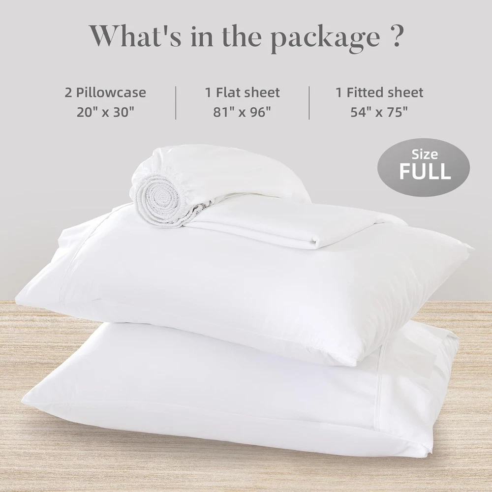 Full Size Sheet Set Rayon Bamboo Cooling Bed Sheets 4 Piece Luxury Bedding ‹ › ‹ › ‹ › ‹ › ‹ › ‹ › ‹ › ‹ › ‹ › Full Size Sheet Set - Rayon Bamboo Cooling Bed Sheets 4 Piece Luxury Bedding Luxurious Comfort: Crafted from a blend of 60% microfiber and 40% rayon derived from bamboo Offers a silky soft touch for a restful night's sleep OEKO-TEX Standard 100 certified for added peace of mind Stay Cool All Night: Moisture-wicking and breathable fabric enhances airflow for an airy, refreshing sleep environment Temperature-regulating properties keep you cool and comfortable even on hot nights Ideal for -round comfort, regardless of the season Perfect Fit, No Slips: 16" extra deep pockets fit most mattresses securely Fitted sheet stays in place on mattresses of all sizes without slipping Ensures a smooth, wrinkle-free surface for your bed Easy Care for Busy Lifestyles: Machine washable and low-maintenance for your convenience Simply wash, dry, and enjoy—no bleaching or special treatments required Full Sheets Set: Includes a flat sheet (81" x 96") and a fitted sheet (54" x 75") with a 16" deep pocket Two pillowcases (20" x 30") included, perfect for full-size mattresses Ensures a luxurious and restful sleep experience Transform Your Sleep Experience: Immerse yourself in nature's purity with our ultra-soft and breathable rayon derived from bamboo sheets. Effortlessly conforming to your body, these bed sheets create a cool and serene sleep environment, allowing you to experience the gentle embrace of nature every night. Indulge in a luxury that enhances your well-being and transform your nights into a haven of rest and relaxation. Shipping Free & Fast Shipping - We offer free shipping to most of the USA with a normal delivery time of 3-7 days. However, due to the current situation, additional delivery time (up to 3 weeks) may be required for some items. Alternative Carriers - We may use alternative carriers (e.g. USPS, FedEx, UPS, etc.) to ensure your package arrives safely and on time. Due to the use of multiple carriers, we are unable to provide a tracking number automatically. Handling Time - Orders are processed and shipped within 1-2 business days of receiving cleared payment. Shipping Restrictions - Shipping to Alaska, Hawaii, Puerto Rico, Guam, and other US territories may incur shipping charges or delivery restrictions. Please contact us before ordering, or your order can be refunded/cancelled. State Restrictions - There may be restrictions based on your state of purchase. For example, certain items may not be shipped to California due to state regulations. Contact for Tracking Updates - If you require tracking updates or have any concerns about the delivery of your order, please feel free to contact us, and we will be happy to assist you. Return 30-Day Hassle-Free Returns - We want you to be completely satisfied with your purchase. If you are not, you can return the item within 30 days of receiving it for a full refund or exchange. Easy Return Process - To start a return, simply contact us and we will provide you with a prepaid return shipping label and detailed instructions. Restocking Fee - There are no restocking fees for returns. However, the buyer is responsible for return shipping costs if the return is not due to a seller's error. Refund Processing Time - Refunds will be processed within 5 business days of receiving the returned item in its condition. Payment We accept all major credit cards, PayPal, and Apple Pay for your convenience. Your payment information is secure and encrypted to ensure a safe and seamless transaction. Please complete your payment within 3 days of purchase to avoid any delays in shipping. Feedback Your feedback is extremely important to us. We strive to provide the best products and customer service possible. If you are satisfied with your purchase, please take a moment to leave us a positive review. If you have any concerns or issues with your order, please contact us before leaving negative feedback. We are committed to resolving any problems and ensuring your satisfaction. Contact Us If you have any questions or concerns, please feel free to out to our customer support team. You can contact us through the eBay messaging system. We are available Monday to Friday, 9:00 am to 5:00 pm EST, and we will do our best to respond to your inquiry within 24 hours. Buy it now and enjoy a pleasant shopping experience! Unit Quantity: 4 Material: Microfiber,Rayon,Rayon derived from Bamboo Features: Breathable,Cooling,Silky,Moisture-wicking,Temperature-regulating,Lightweight,Deep pocket,Wrinkle resistant,Soft & cooling Theme: Luxury Care Instructions: Machine Wash,Low heat tumble dry Department: Adults Room: Bedroom Size: Full Type: Sheet Set Color: White Pattern: Solid Thread Count: 400 Style: Modern Shape: Rectangular GSM (Grams per Square Meter): Not specified Unit Type: Unit