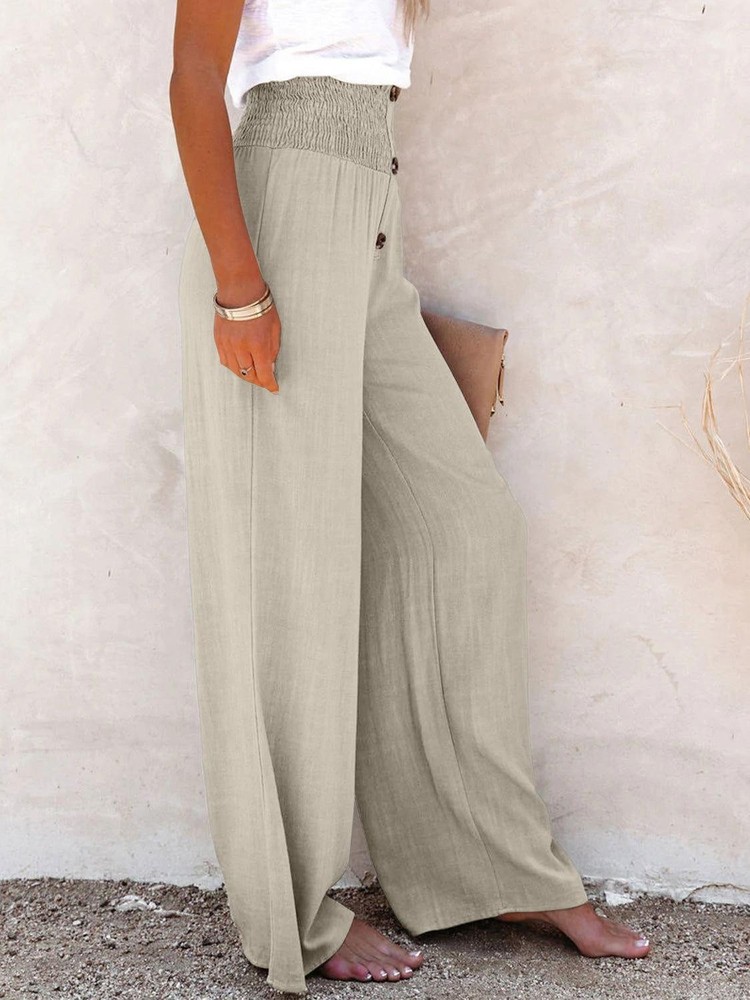 1. Love these high-waisted pants! The decorative buttons add a stylish touch, and the 100% cotton fabric is super comfortable. They fit perfectly and feel great—super flattering and easy to care for. Definitely a wardrobe staple!