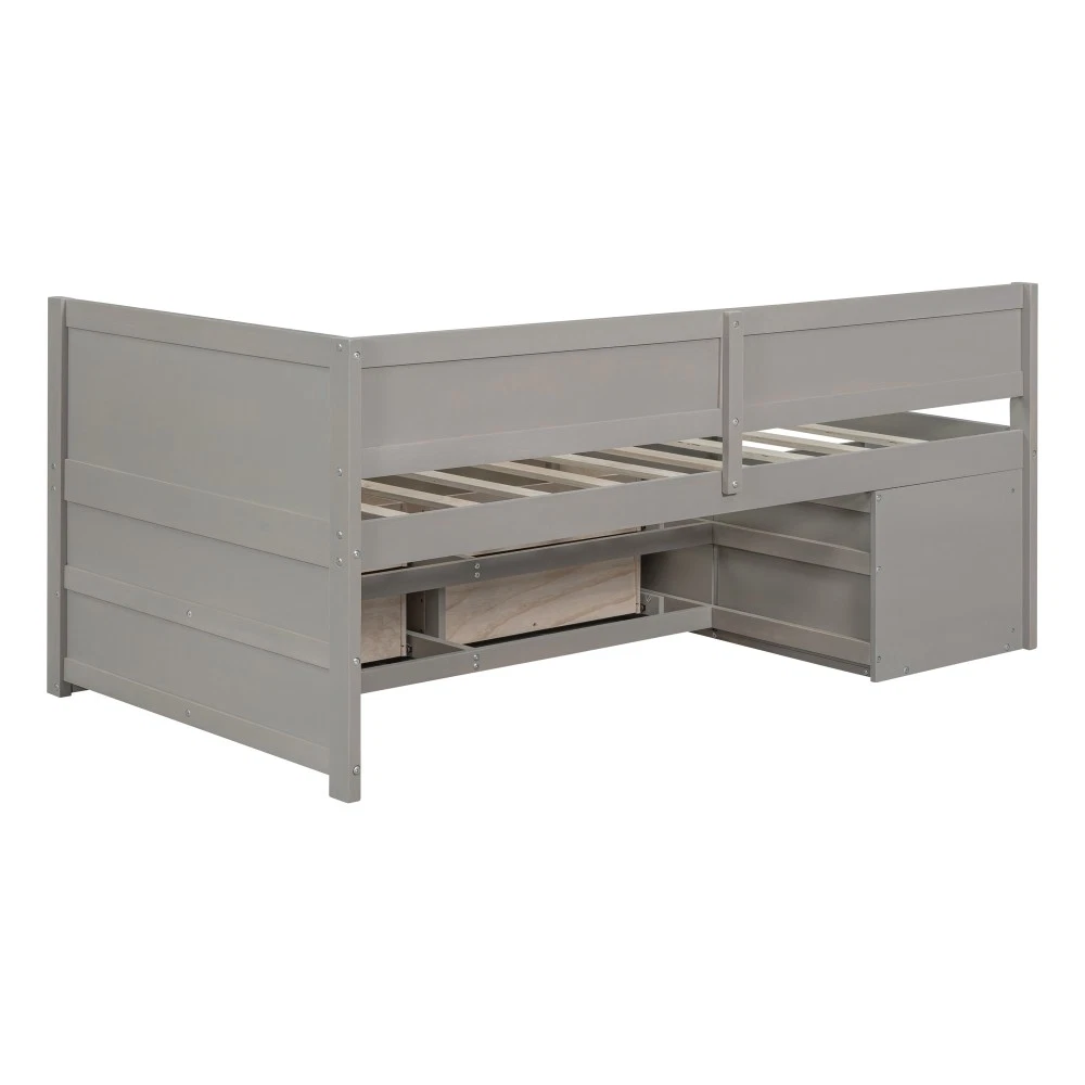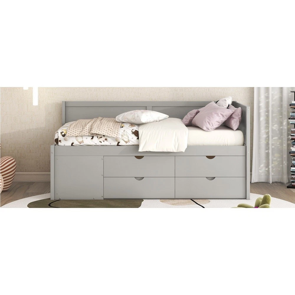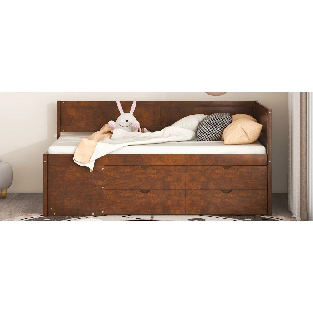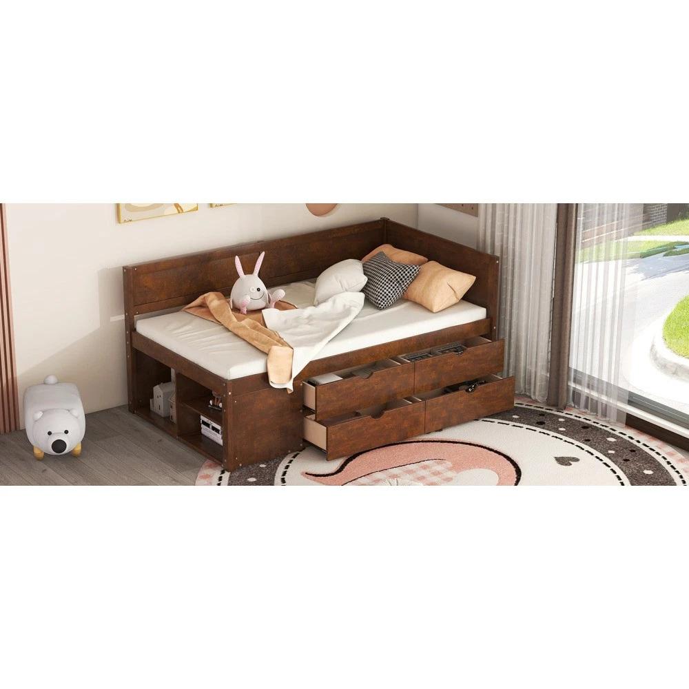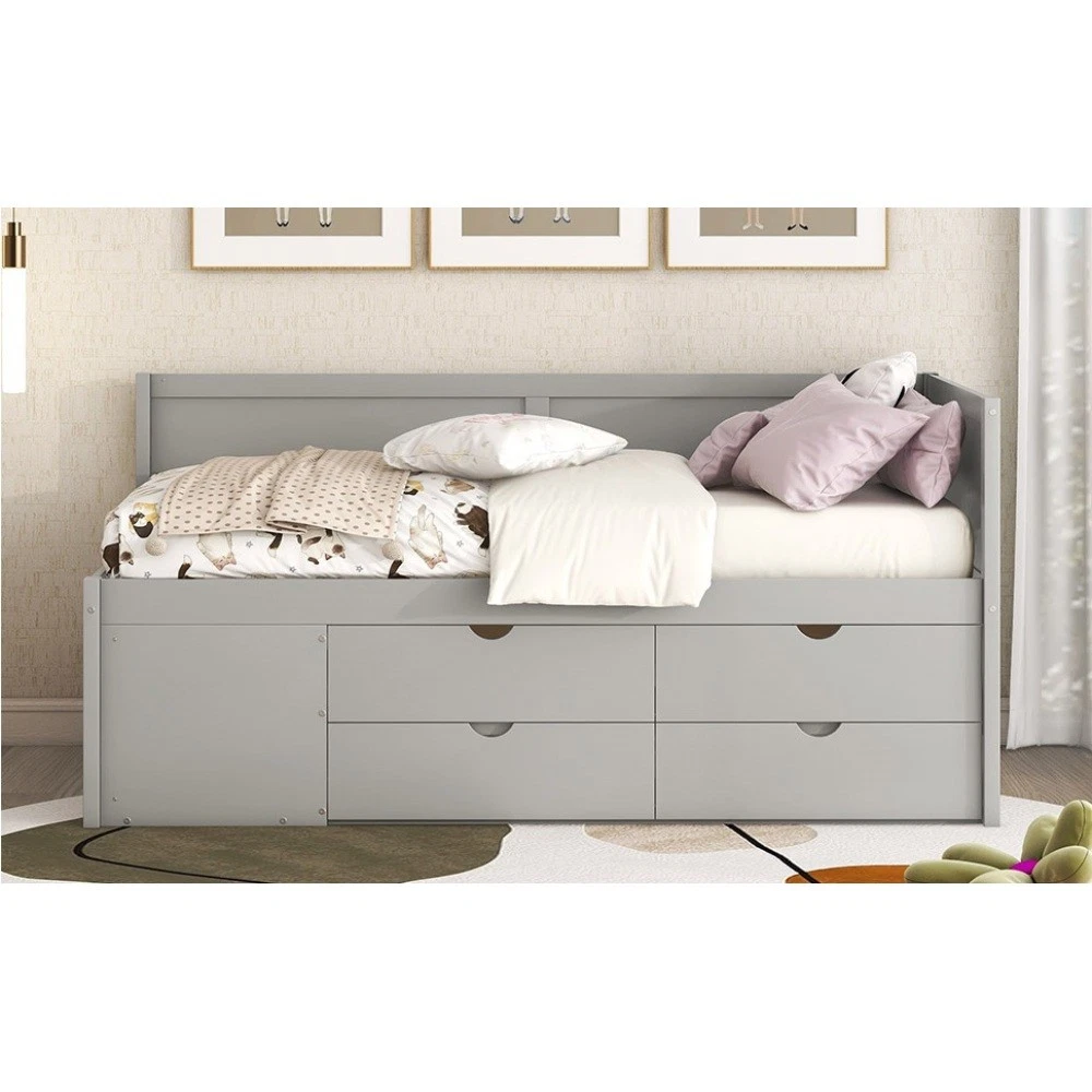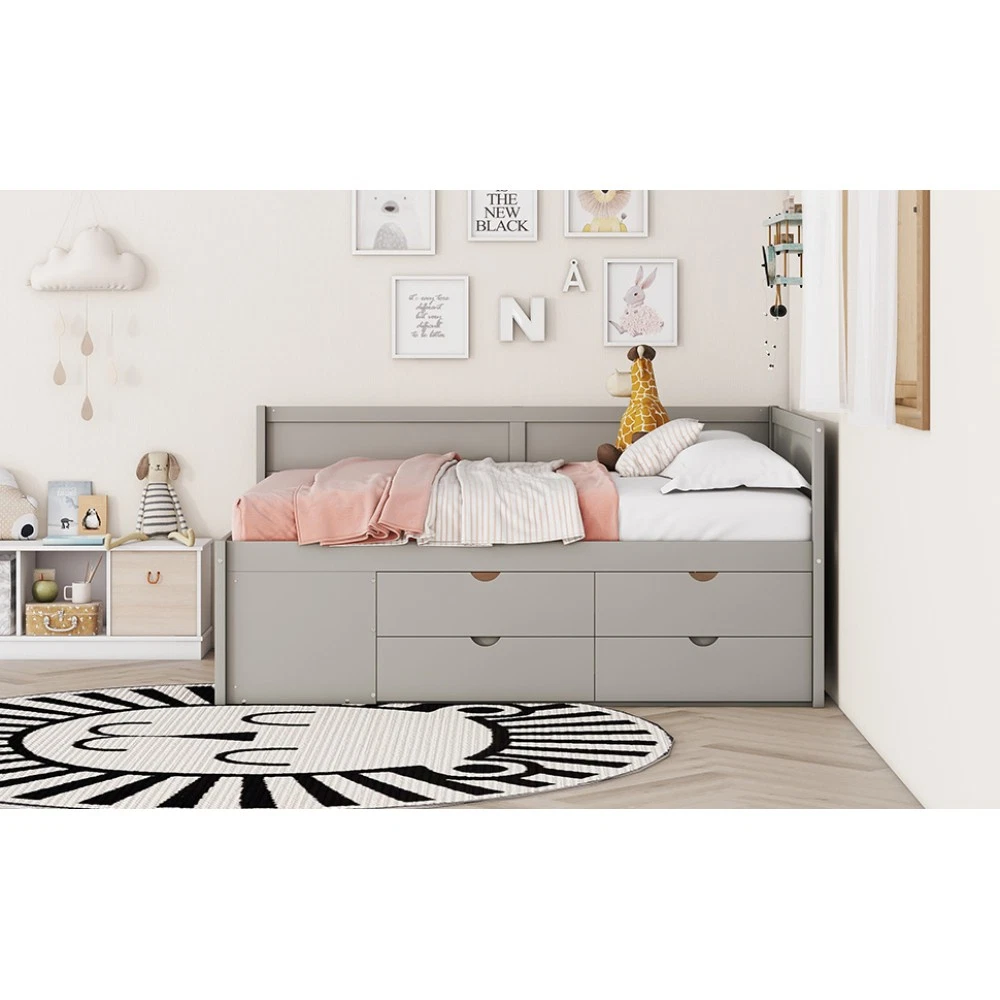 [Maximized space] The daybed with handy pull-out drawers and three functioning shelves takes up minimal space, perfect for organizing anything from clothes and bed linens to toys and games. Such a versatile piece, bringing functionality, versatility, and style to your home, perfect for those who have limited space. [Elegant design] This daybed with handy pull-out drawers is designed with a clean silhouette and a hue of elegance. It gives any room a spark of style that's both modern and timeless. [Solid Construction] The bed structure is crafted from high-quality and a strong, durable frame so that the bed is sturdy and durable. The simple yet elegant wood frame is sturdy and comes with wood slats for extra support and ensures air moves freely around your mattress to keep it fresh for years to come. [Health and Comfort] No box spring required, and without needing a foundation. Built-in smoothly sliders , easy for you to pull out of the drawers. [Dimensions] Overall Product Dimension: 77.8"L x 57.6"W x 34.3"H. Mattress not included. Some assembly is required, although we have provided clear instructions and tools. The daybed with handy pull-out drawers and three functioning shelves takes up minimal space, perfect for organizing anything from clothes and bed linens to toys and games. Such a versatile piece, bringing functionality, versatility, and style to your home, perfect for those who have limited space. High-quality, solid and a strong, durable frame ensures stability and durability for long-term use. Slat kit included so box springs are not required. This daybed is designed with a clean silhouette and a hue of elegance. It suits all styles of home decoration, and completes the look of any bedroom. Weight & Dimensions Overall Product Dimension 77.8"L x 57.6"W x 34.3"H Detail Product Dimension Please refer to the Size image Number of Package 2 Package Dimension Please refer to the Specification Overall Product Weight 145.63LBS Package Weight Please refer to the Specification Weight Capacity 350LBS Recommended Mattress Thickness 6" Specifications: Product Type Daybed Size Full Color White/Gray/Walnut Material Plywood+MDF+Pinewood Box Spring Required No Number of Slats 10 Assembly Required Yes Country of Origin Vietnam Notes: Manual measurement has been used,there may be some reasonable error. All the pictures are taken by actual samples, slight chromatic aberration may occur due to lighting or display.
