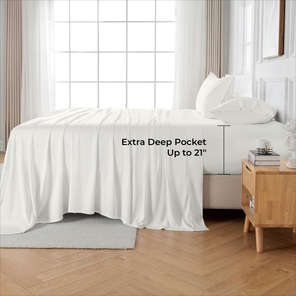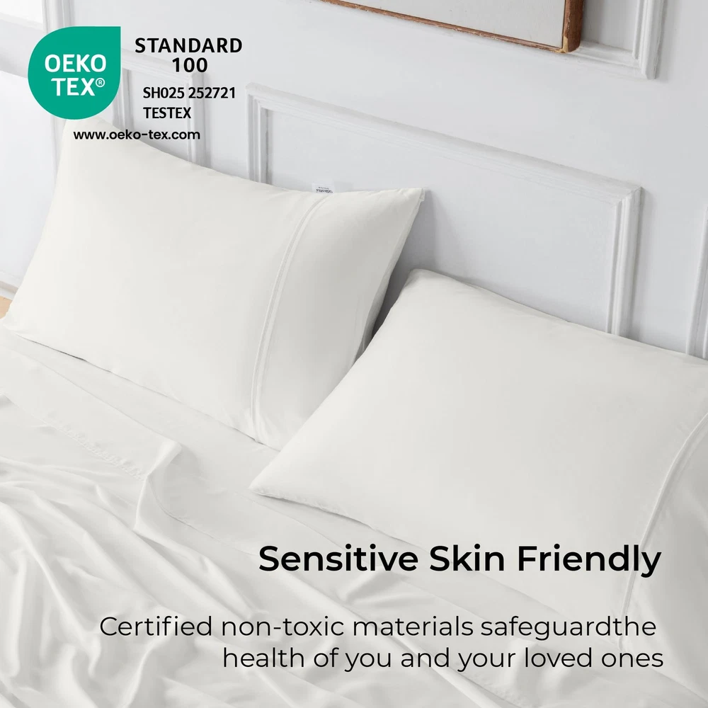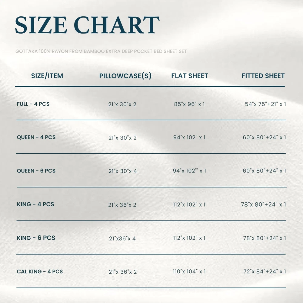 Embrace unparalleled comfort with the Full Size Bamboo Rayon Bed Sheets, meticulously crafted to transform your sleep into a luxurious experience. Our sheets are designed with your ultimate comfort in mind, made from 100% Rayon derived from bamboo, renowned for its incredible softness and sustainable qualities. Luxurious Softness & Comfort Dive into the silky smooth embrace of our sheets every night. The unique properties of bamboo rayon offer a plush feel that gently caresses your skin, ensuring a restful sleep. The breathability of the material regulates temperature, keeping you cool in the summer and cozy in the winter. Deep Pocket Design with Secure Fit Forget the hassle of fitted sheets that slip off. Our fitted sheet feature a generous 21 inches extra deep pocket and are equipped with elastic corner straps, promising a snug and secure fit on full size mattress. This thoughtful design ensures your sheets stay in place, providing uninterrupted comfort. Sustainable Material Enjoy a restful night with bedding that's mindful of the environment. Bamboo rayon, used in our sheets, is derived from a rapidly growing resource that requires less water compared to many other fibers. This makes our sheets not only luxurious but also aligned with more sustainable practices. Easy Care, Lasting Beauty Maintaining the luxurious feel and look of your sheets is effortless. Our bed sheets are durable and resist pilling, ensuring they remain soft and beautiful wash after wash. For best results, simply wash in cold water and tumble dry on low. What's Included: 1 Full Size Fitted Sheet (21" Deep Pocket) 1 Full Size Flat Sheet 2 Full Size Pillowcases Transform your sleep experience with the Sheets. Imported Luxurious Sleep Experience-bed sheets made of 100% rayon derived from bamboo, offering unmatched softness, thickness, and cooling properties. These meticulously crafted sheets feature excellent moisture-wicking and sweat-absorbing capabilities, preventing uncomfortable night sweats in the summer while retaining warmth in the winter. Suitable for all seasons,and ensure you experience exceptional comfort every night. Stay in Place with 21" Extra Deep Pocket-The fitted sheet features an all-around elastic and 4 elastic corner straps, uniquely designed to stay in place all night. The extra deep pockets accommodate mattresses 18-21 inches thick, ensuring uninterrupted and restful sleep with sheets that won’t bunch up or shift. Superior Softness, Softer than Cotton-Indulge in the perfect blend of luxury and comfort with bed sheets, crafted with a premium 300 thread count. The sheets are significantly softer than traditional cotton, boasting a thick, silky-smooth fabric that offers an unparalleled premium feel. Expertly crafted for durability, sheets retain their like-new quality even after multiple washes, providing long-lasting luxury with excellent breathability and unmatched softnes. OEKO-TEX Standard 100 Certified - Gökotta’s fabric suppliers are certified to OEKO-TEX 100 standards, ensuring that the fabric and thread used in our products are rigorously tested for harmful substances and meet strict safety and environmental requirements.