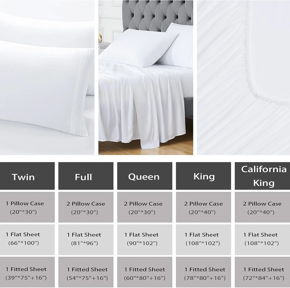 Full Size Rayon Bamboo Sheets Set - Soft, Breathable & Cooling for Night Sweats ‹ › ‹ › ‹ › ‹ › ‹ › ‹ › ‹ › ‹ › ‹ › Full Size Rayon Bamboo Sheets Set - Soft, Breathable & Cooling for Night Sweats The epitome of luxury and comfort, our Full Size Rayon Bamboo Sheets Set provides an elegant yet pragmatic solution for your sleeping needs. Crafted from premium Rayon derived from bamboo, these sheets offer a natural and stylish touch to your bedroom decor. Features: Cool & Breathable: Engineered to wick moisture away, these sheets effortlessly keep you cool throughout the night. An ideal choice for those prone to night sweats or hot sleepers. Silk Soft Feel: The exquisite twill weave enhances softness, creating a gentle touch on your skin while also reducing tension on your hair to minimize friction-related issues. 16" Deep Pocket: Our fitted sheet features a fully elasticized design that hugs your mattress securely, preventing any shifting during sleep for a consistently smooth experience. Complete Luxury Set: Enjoy a full size luxury 4-piece bed sheet set that includes 1 flat sheet (81"x96"), 1 fitted sheet (54"x75"+16"), and 2 pillowcases (20"x30"). Benefits: Regulates body temperature, providing a perfect environment for restful sleep. Reduces wrinkles and hair loss, promoting healthier skin and hair. Durable elastic ensures your sheets stay in place, allowing you to focus on your dreams. Stylish design complements any bedroom aesthetic. Why choose our Rayon Bamboo Sheets Set? Experience the ultimate sleeping sanctuary with our Full Size Rayon Bamboo Sheets Set. If you're searching for an innovative solution to enhance your sleep quality while adding a touch of luxury to your bedroom, these sheets are your answer. With the perfect balance of softness, breathability, and cooling properties, this set is designed to address all your sleeping challenges. Indulge in the soothing, whisper-soft comfort that only high-quality bamboo sheets can provide. Say goodbye to restless nights, and embrace blissful slumber—order your Full Size Rayon Bamboo Sheets Set today! Shipping Free & Fast Shipping - We offer free shipping to most of the USA with a normal delivery time of 3-7 days. However, due to the current situation, additional delivery time (up to 3 weeks) may be required for some items. Alternative Carriers - We may use alternative carriers (e.g. USPS, FedEx, UPS, etc.) to ensure your package arrives safely and on time. Due to the use of multiple carriers, we are unable to provide a tracking number automatically. Handling Time - Orders are processed and shipped within 1-2 business days of receiving cleared payment. Shipping Restrictions - Shipping to Alaska, Hawaii, Puerto Rico, Guam, and other US territories may incur shipping charges or delivery restrictions. Please contact us before ordering, or your order can be refunded/cancelled. State Restrictions - There may be restrictions based on your state of purchase. For example, certain items may not be shipped to California due to state regulations. Contact for Tracking Updates - If you require tracking updates or have any concerns about the delivery of your order, please feel free to contact us, and we will be happy to assist you. Return 30-Day Hassle-Free Returns - We want you to be completely satisfied with your purchase. If you are not, you can return the item within 30 days of receiving it for a full refund or exchange. Easy Return Process - To start a return, simply contact us and we will provide you with a prepaid return shipping label and detailed instructions. Restocking Fee - There are no restocking fees for returns. However, the buyer is responsible for return shipping costs if the return is not due to a seller's error. Refund Processing Time - Refunds will be processed within 5 business days of receiving the returned item in its original condition. Payment We accept all major credit cards, PayPal, and Apple Pay for your convenience. Your payment information is secure and encrypted to ensure a safe and seamless transaction. Please complete your payment within 3 days of purchase to avoid any delays in shipping. Feedback Your feedback is extremely important to us. We strive to provide the best products and customer service possible. If you are satisfied with your purchase, please take a moment to leave us a positive review. If you have any concerns or issues with your order, please contact us before leaving negative feedback. We are committed to resolving any problems and ensuring your satisfaction. Contact Us If you have any questions or concerns, please feel free to reach out to our customer support team. You can contact us through the eBay messaging system. We are available Monday to Friday, 9:00 am to 5:00 pm EST, and we will do our best to respond to your inquiry within 24 hours. Buy it now and enjoy a pleasant shopping experience! UPC: Not Set Item Length: Not Set Item Width: Not Set Unit Quantity: 1 Material: Rayon,Rayon Derived from Bamboo Character: Not Set Features: Breathable,Cooling,Deep Pocket Theme: Summer Care Instructions: Not Set Department: Adults Room: Bedroom Labels & Certifications: Not Set Brand: Unbranded Size: Full Type: Sheet Set Color: White Pattern: Solid MPN: Not Set Character Family: Not Set Country/Region of Manufacture: Not Set Style: Not Set Thread Count: 300 Shape: Rectangular Model: Not Set GSM (Grams per Square Meter): Not Set Product Line: Not Set Unit Type: Unit