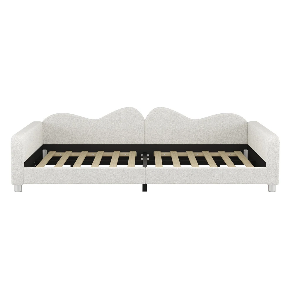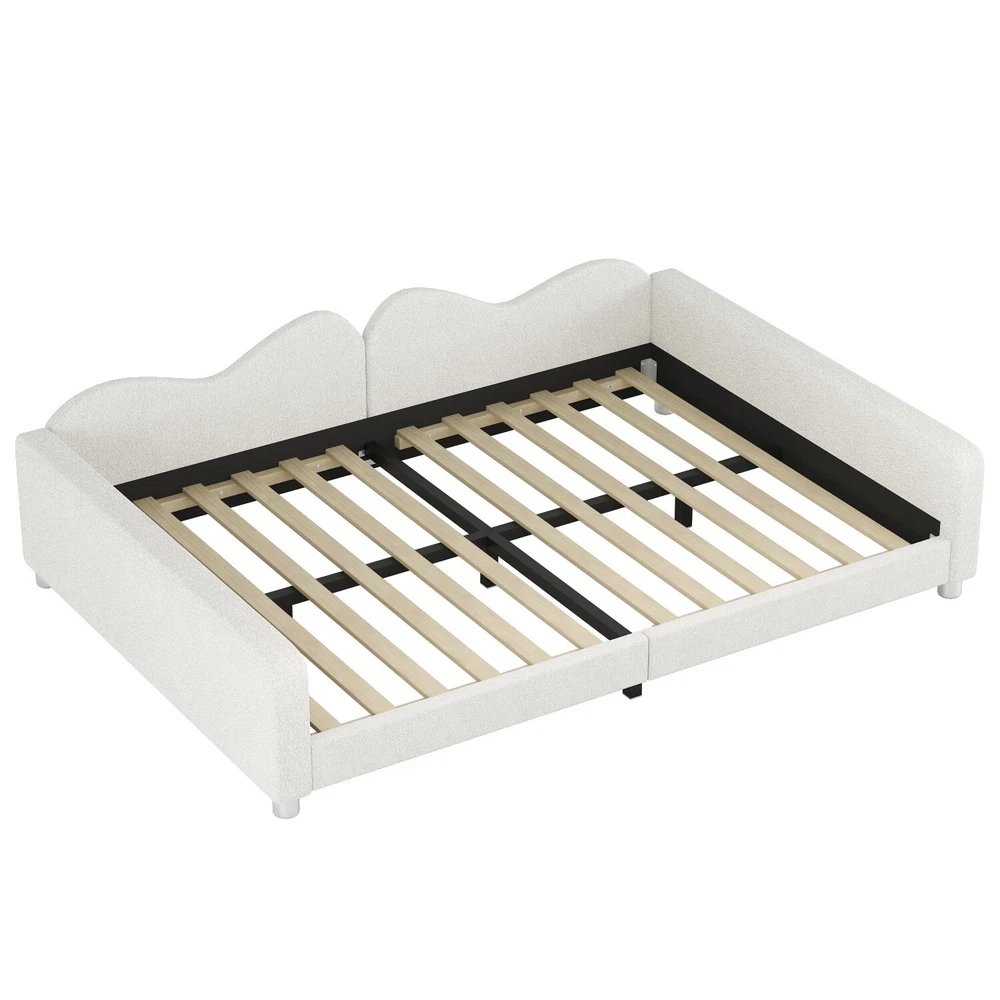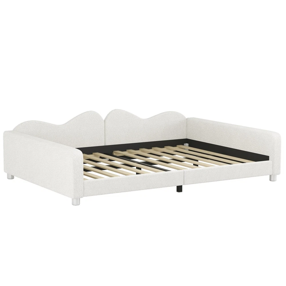 Description Product Features [Comfortable fabric] This upholstered daybed is made of selected sherpa fabrics, soft fabric headboard provides a comfortable and warm sleeping environment. [Elegant design] This daybed has one backrest and two armrests, the backrest is designed with cloud shape, elegant and cute, not only suitable for any home decoration, but also loved by children. [No box spring needed] This daybed is a valuable choice as it does not require a box spring or foundation. Just place your mattress on top and enjoy it. [Solid Construction] Made of high-quality MDF, the frame of this bed is not easy to be affected by humidity change and lead to crack. The strong legs, wide boards and 12 slats for bed, not only improve the weight capacity of the bed greatly but also ensure the stability. [Dimensions and Assembly] Overall Product Dimension: 80"L X56"W X 27"H. Suitable for Full size mattresses. Full size Upholstered Daybed, Sherpa Fabric Sofabed with Cloud-Shaped Backrest This daybed is made of selected sherpa fabrics, elegant white, gray or pink, with one backrest and two armrests, the backrest is designed with cloud shape, elegant and cute, not only suitable for any home decoration, but also loved by children. A soft fabric headboard provides a comfortable and warm sleeping environment. This daybed is a valuable choice as it does not require a box spring or foundation. Just place your mattress on top and enjoy it. With our daybed, relaxation meets efficiency, making it the perfect addition to any modern home. Full size Upholstered Daybed, Sherpa Fabric Sofabed with Cloud-Shaped Backrest This daybed is made of selected sherpa fabrics, elegant white, gray or pink, with one backrest and two armrests, the backrest is designed with cloud shape, elegant and cute, not only suitable for any home decoration, but also loved by children. A soft fabric headboard provides a comfortable and warm sleeping environment. This daybed is a valuable choice as it does not require a box spring or foundation. Just place your mattress on top and enjoy it. With our daybed, relaxation meets efficiency, making it the perfect addition to any modern home. Product information Product Type Daybed Color White Material MDF+Plywood+Sherpa Fabric Size Full Detail Product Dimension Please refer to the Size image Weight Capacity 500LBS Number of Slats 12 Recommended Mattress Thickness 6" Assembly Required Yes Country of Origin China Package Includes: 1 x Daybed Notes: Please kindly known: The Mattress is not included. Note: 1. Please allow 0-2 cm error due to manual measurement. Thanks for your understanding. 2. Monitors are not calibrated same, item color displayed in photos may be showing slightly different from the real object. Please take the real one as standard. 3. Please kindly note that this product needs to be assembled by yourself.