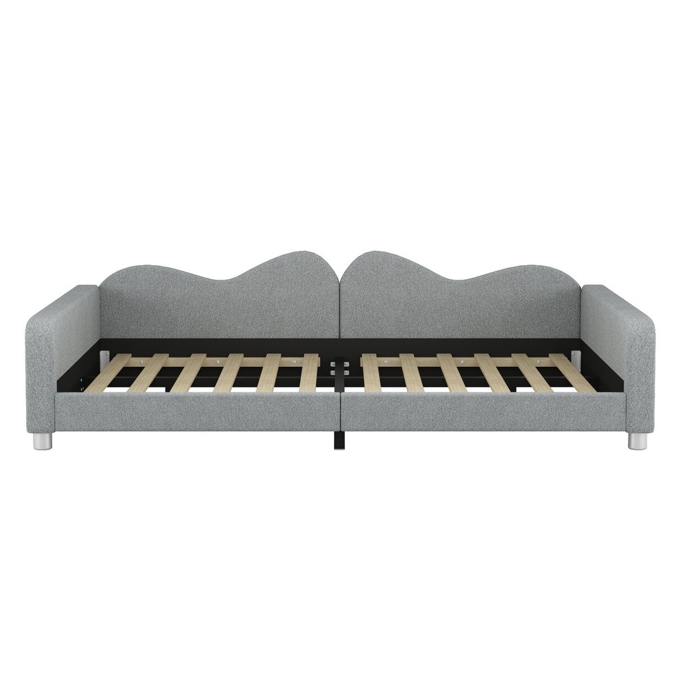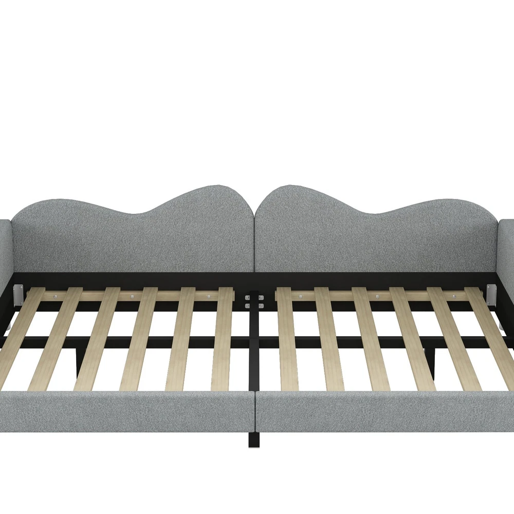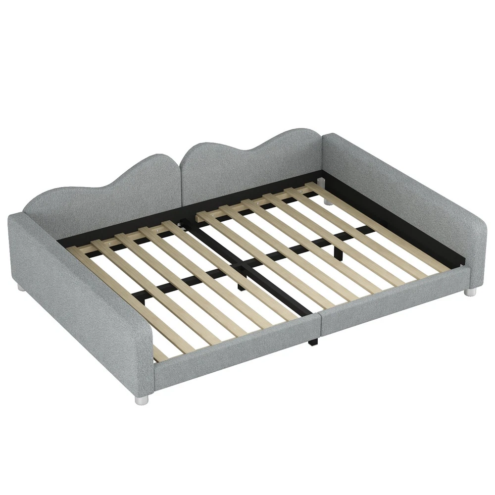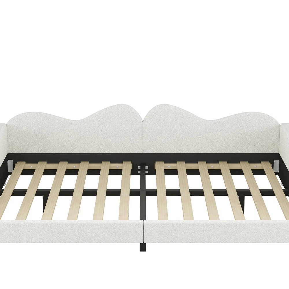 Description Product Features [Comfortable fabric] This upholstered daybed is made of selected sherpa fabrics, soft fabric headboard provides a comfortable and warm sleeping environment. [Elegant design] This daybed has one backrest and two armrests, the backrest is designed with cloud shape, elegant and cute, not only suitable for any home decoration, but also loved by children. [No box spring needed] This daybed is a valuable choice as it does not require a box spring or foundation. Just place your mattress on top and enjoy it. [Solid Construction] Made of high-quality MDF, the frame of this bed is not easy to be affected by humidity change and lead to crack. The strong legs, wide boards and 12 slats for bed, not only improve the weight capacity of the bed greatly but also ensure the stability. [Dimensions and Assembly] Overall Product Dimension: 80"L X56"W X 27"H. Suitable for Full size mattresses. Full size Upholstered Daybed, Sherpa Fabric Sofabed with Cloud-Shaped Backrest This daybed is made of selected sherpa fabrics, elegant white, gray or pink, with one backrest and two armrests, the backrest is designed with cloud shape, elegant and cute, not only suitable for any home decoration, but also loved by children. A soft fabric headboard provides a comfortable and warm sleeping environment. This daybed is a valuable choice as it does not require a box spring or foundation. Just place your mattress on top and enjoy it. With our daybed, relaxation meets efficiency, making it the perfect addition to any modern home. Full size Upholstered Daybed, Sherpa Fabric Sofabed with Cloud-Shaped Backrest This daybed is made of selected sherpa fabrics, elegant white, gray or pink, with one backrest and two armrests, the backrest is designed with cloud shape, elegant and cute, not only suitable for any home decoration, but also loved by children. A soft fabric headboard provides a comfortable and warm sleeping environment. This daybed is a valuable choice as it does not require a box spring or foundation. Just place your mattress on top and enjoy it. With our daybed, relaxation meets efficiency, making it the perfect addition to any modern home. Product information Product Type Daybed Color White Material MDF+Plywood+Sherpa Fabric Size Full Detail Product Dimension Please refer to the Size image Weight Capacity 500LBS Number of Slats 12 Recommended Mattress Thickness 6" Assembly Required Yes Country of Origin China Package Includes: 1 x Daybed Notes: Please kindly known: The Mattress is not included. Note: 1. Please allow 0-2 cm error due to manual measurement. Thanks for your understanding. 2. Monitors are not calibrated same, item color displayed in photos may be showing slightly different from the real object. Please take the real one as standard. 3. Please kindly note that this product needs to be assembled by yourself.