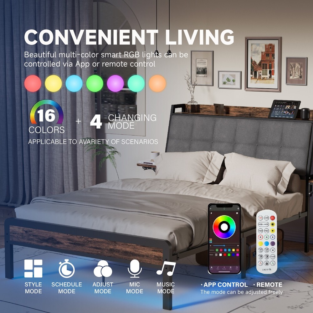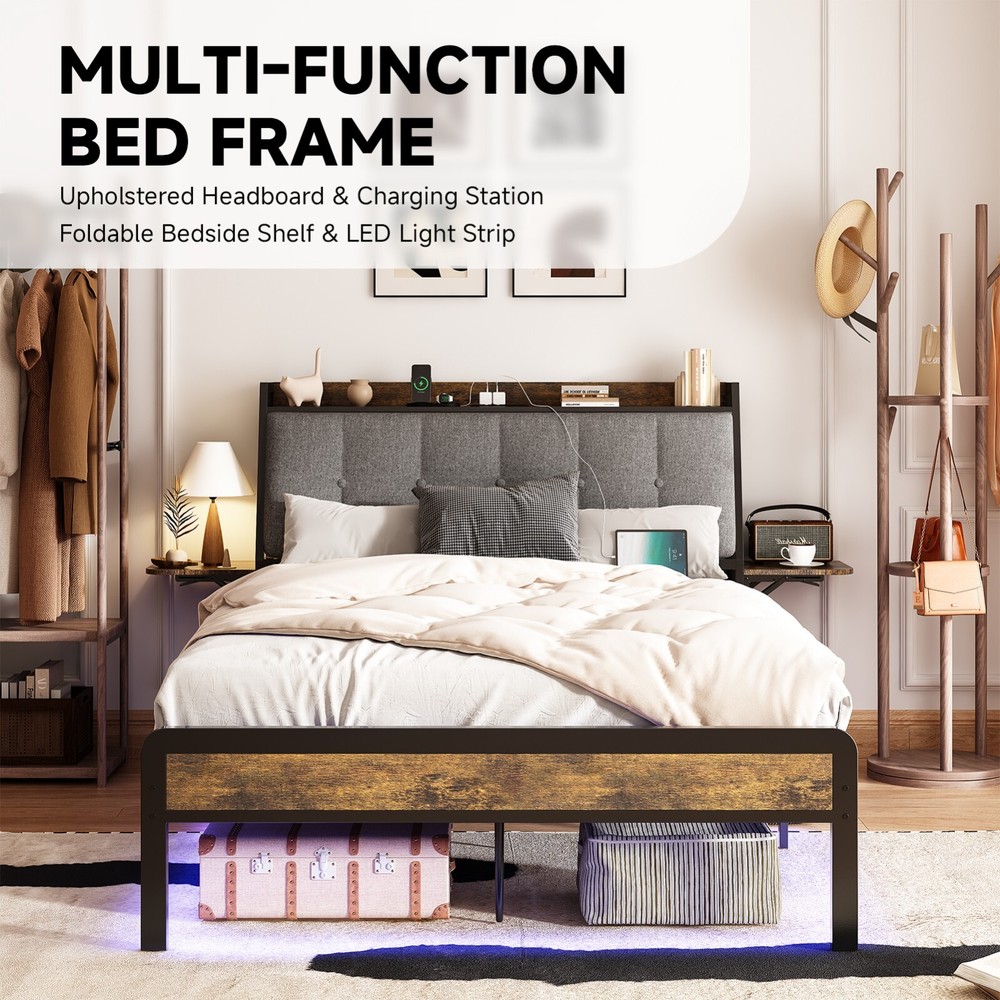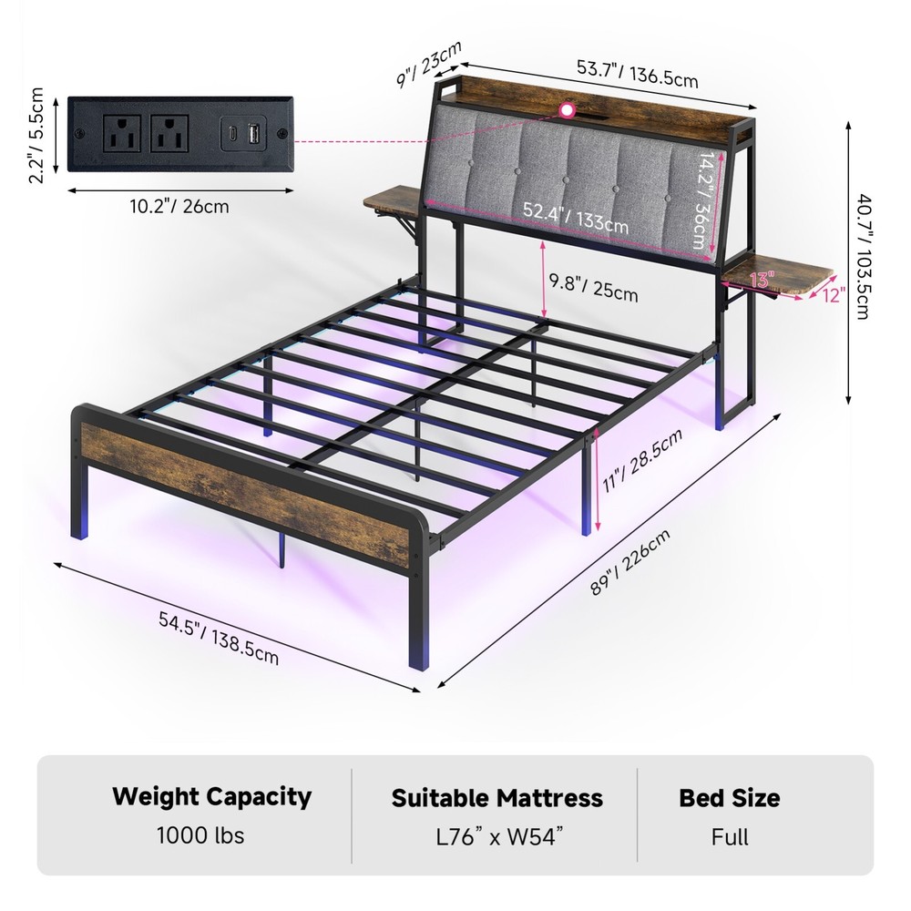 【STORAGE HEADBOARD WITH CHARGING STATION】 The headboard is equipped with a built-in charging station, including 2 AC Outlets, a USB port and a type-C port, allowing you to charge various electronic devices within easy reach. 2-Tier Storage shelf on the headboard can provide more storage space, making it convenient for you to place commonly used items such as magazines, phones, alarm clocks, etc 【 OPTIONAL SELF-ADHENSIVE LED LIGHTS 】 The bed frame comes with 1 extra self-adhesive led light, recommended assemble it on the bed frame headboard shelf or headboard backside. The remote / APP controllable RGB led lights, which are over 20 colors choosable and 4 adjustable modes, create your favorite bedroom atmosphere 【 SUPER STURDY & NOISE FREE 】 12 thickened metal slats system of the platform bed frame offers extra stability and holds up to 1000 lbs. No worry about kids jumping on it. All the screw holes are accurately prepared, and each piece connects well to avoid squeaking. Fit all deepth of X mattresses, No Box Spring Needed, giving you a quiet and restful sleep 【 UPHOLSTERED & UNDER BED STORAGE 】 Upgrade your bedroom with this contemporary bed adorned in a neutral-toned linen fabric. This full size bed frame provides 11” space underneath to store shoes, boxes, and luggage, designed for seamless organization of luggage, shoe boxes, and storage bins. ensuring a consistently tidy bedroom 【 EASY TO ASSEMBLE AND WARRANTY 】 No additional tools required. It takes about 45 minutes for two people to assemble. The bed could load up to 1000 Lbs. Redlife bed frame warranty: ① Replacement for any missing or invalid parts. ② Helpful and patient after-sales customer service, reply within 24 hours, bring you a good shopping On Nov 13, 2024 at 01:12:51 PST, seller added the following information: On Jan 17, 2025 at 01:23:15 PST, seller added the following information: On Jun 16, 2025 at 23:58:59 PDT, seller added the following information: