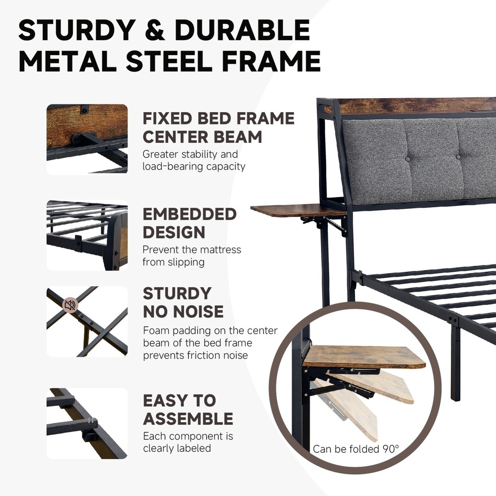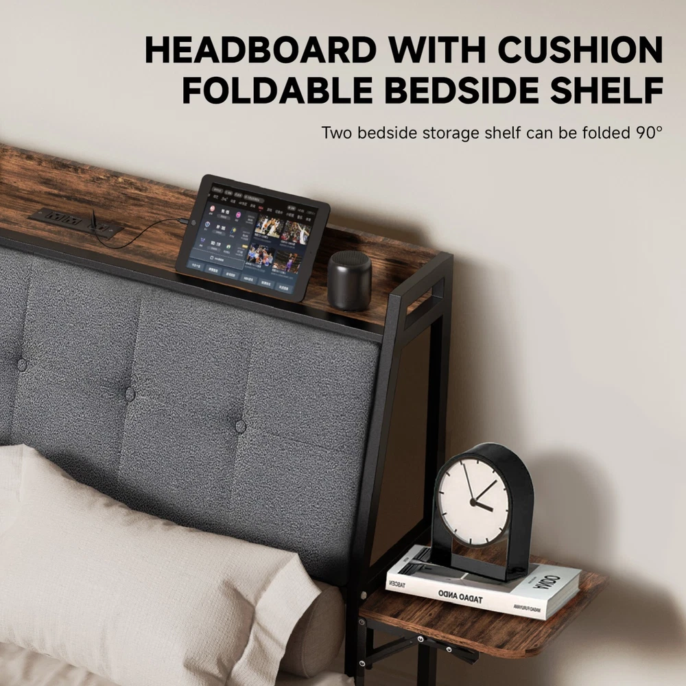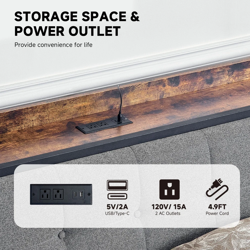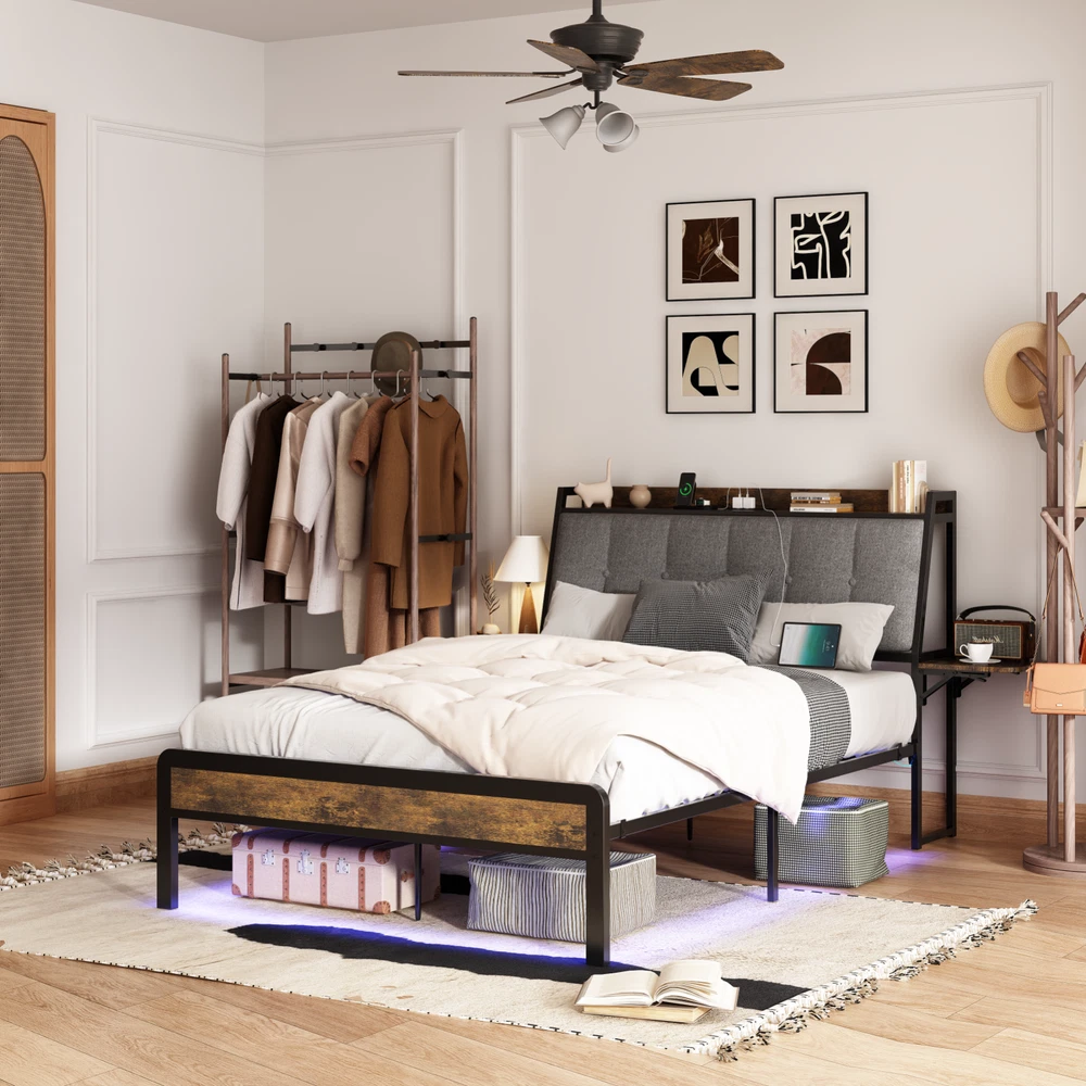 【STORAGE HEADBOARD WITH CHARGING STATION】 The headboard is equipped with a built-in charging station, including 2 AC Outlets, a USB port and a type-C port, allowing you to charge various electronic devices within easy reach. 2-Tier Storage shelf on the headboard can provide more storage space, making it convenient for you to place commonly used items such as magazines, phones, alarm clocks, etc 【 OPTIONAL SELF-ADHENSIVE LED LIGHTS 】 The bed frame comes with 1 extra self-adhesive led light, recommended assemble it on the bed frame headboard shelf or headboard backside. The remote / APP controllable RGB led lights, which are over 20 colors choosable and 4 adjustable modes, create your favorite bedroom atmosphere 【 SUPER STURDY & NOISE FREE 】 12 thickened metal slats system of the platform bed frame offers extra stability and holds up to 1000 lbs. No worry about kids jumping on it. All the screw holes are accurately prepared, and each piece connects well to avoid squeaking. Fit all deepth of X mattresses, No Box Spring Needed, giving you a quiet and restful sleep 【 UPHOLSTERED & UNDER BED STORAGE 】 Upgrade your bedroom with this contemporary bed adorned in a neutral-toned linen fabric. This full size bed frame provides 11” space underneath to store shoes, boxes, and luggage, designed for seamless organization of luggage, shoe boxes, and storage bins. ensuring a consistently tidy bedroom 【 EASY TO ASSEMBLE AND WARRANTY 】 No additional tools required. It takes about 45 minutes for two people to assemble. The bed could load up to 1000 Lbs. Redlife bed frame warranty: ① Replacement for any missing or invalid parts. ② Helpful and patient after-sales customer service, reply within 24 hours, bring you a good shopping On Nov 13, 2024 at 01:12:51 PST, seller added the following information: On Jan 17, 2025 at 01:23:15 PST, seller added the following information: On Jun 16, 2025 at 23:58:59 PDT, seller added the following information: