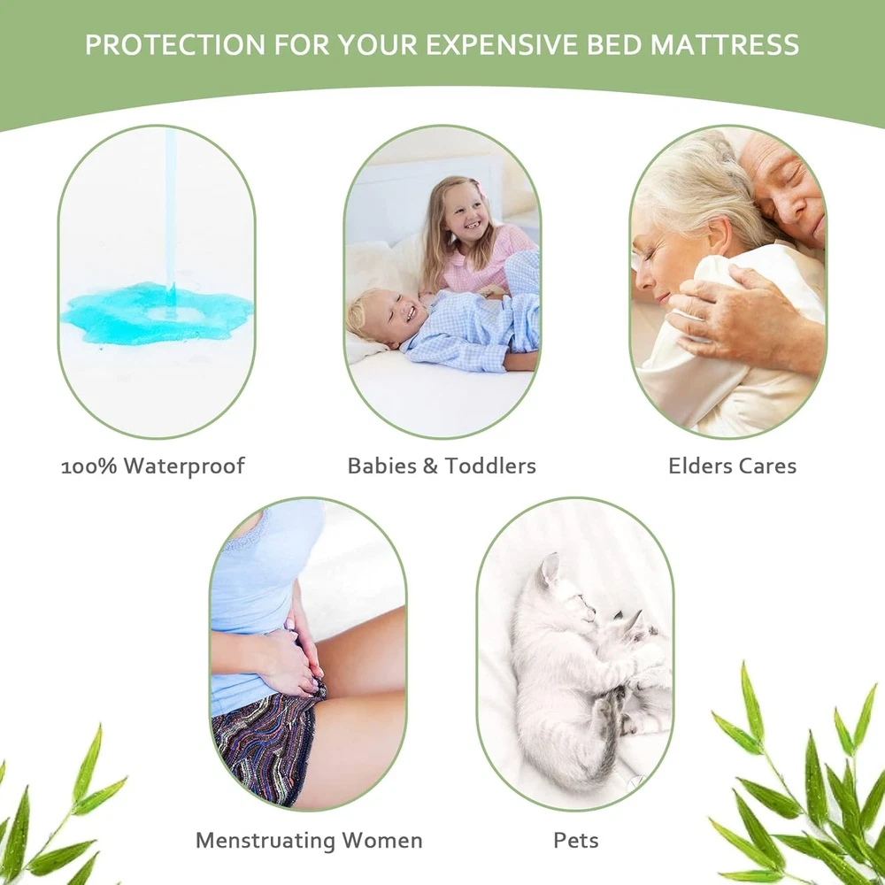 This mattress protector is a game-changer! The bamboo fabric is incredibly soft and breathable, keeping me cool all night without any weird crinkly noises. I love that it’s waterproof yet doesn’t feel like a plastic sheet—just cozy comfort while protecting my mattress from spills and sweat. The 2-pack is such a great value, and it stays in place perfectly. Highly recommend for anyone wanting a cool, dry, and fresh sleep!