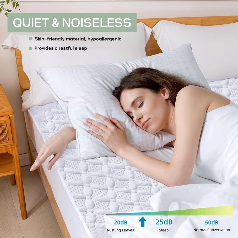 Cooling Mattress Pad - Quilted Fitted Noiseless Mattress Cover, Soft and Fluf...