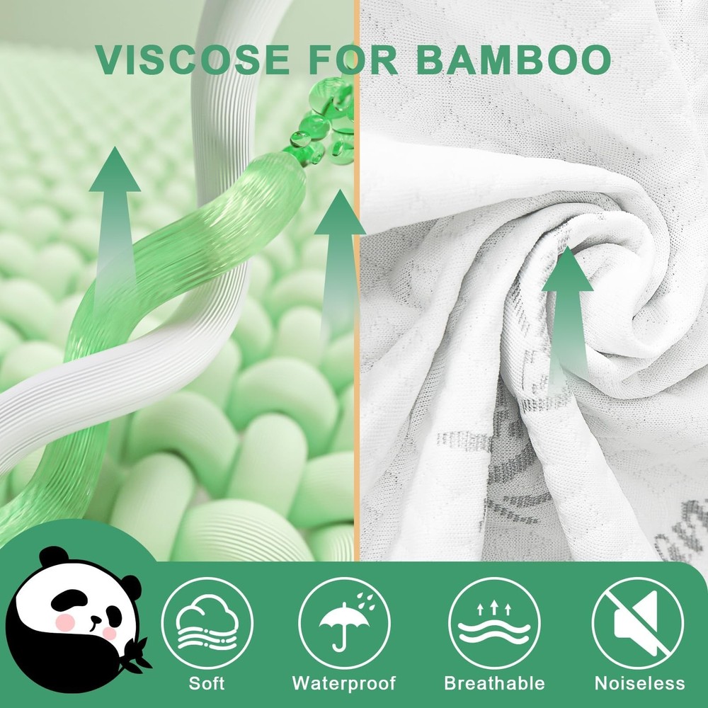Mattress Protectors Full Panda Premium Microfiber: Our mattress protector is made of 70% viscose for bamboo and 30% polyester and is fast-wicking and anti-odor. Moisture-wicking fabric keeps you cool and comfortable while you sleep to ensure an optimal night's sleep Waterproof TPU Backing: The backing of this full mattress protector is made of a premium TPU membrane that prevents stains such as spills, sweat, body fluids, and bedwetting. It keeps your mattress clean and dry Fitted Skirt: The elastic fitted skirt fits oversized 21 inches deep, and the 360° cover and sham style keep your mattress cover securely in place, easily protecting your mattress from accidental spills and soiling Versatile and Resilient: Our waterproof mattress protectors are suitable for a variety of life scenarios, including homes with children, pets, allergies, asthma, eczema, or incontinence, making your life easier Easy Care and Maintenance: Our mattress protector is designed for easy care and maintenance. Machine washable at 30 degrees centigrade and tumble dryable at low temperature for easy cleaning