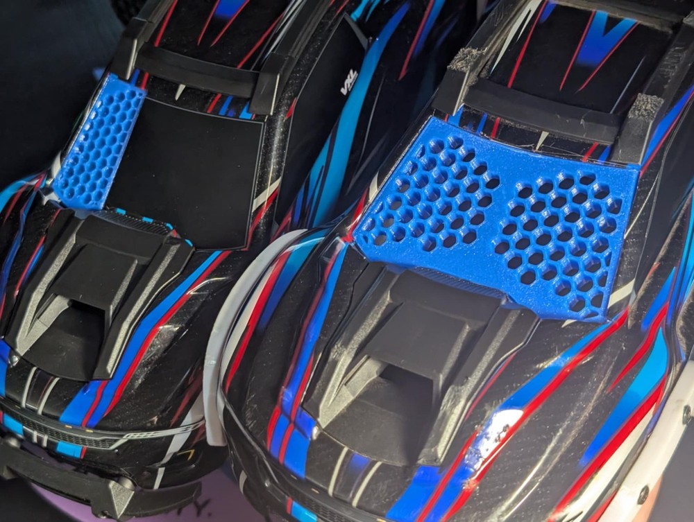 Boost performance and protection on your Mini XRT. Our Front and Rear Windshield Inserts increase airflow to key electronics while shielding against dirt and debris. A built-in center brace adds extra structural support for those unexpected tumbles. Installation requires cutting out the stock windshield (reference photo), and the inserts bolt in using your existing roof skid hardware. The front cover's molded double-lip design provides a tight, secure fit-no tape or shortcuts needed. Additional cooling methods are still recommended to avoid esc/motor from overheating! *Package Includes* 1x Full Front Windshield Insert 1x Rear Window Insert What separates us from the competition? Simple, we use high grade and high quality 3D printers to ensure the best quality and strength for you! We test our mounts to ensure the best durability. Always taking custom requests! If you don't see it, let us know and we can work towards turning your idea into a reality!