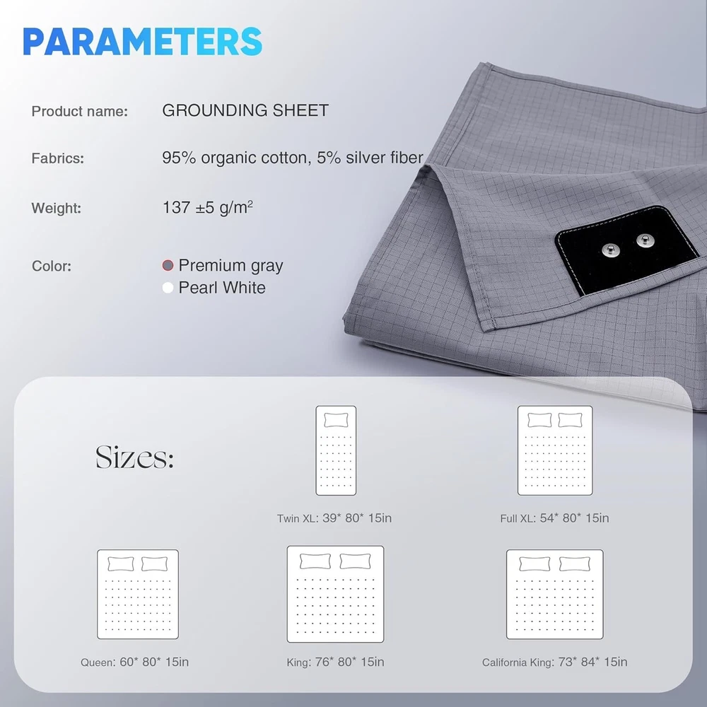Features: Skin-friendly, Grounding, Comfortable, Durable, Tear-resistant, Conductive, Grounding Cord, Easy to Clean, Soft Fabric Type: 95% Cotton+ 5% Pure Silver Product Dimensions: 80"l X 54"w Care Instructions: Machine Wash, Machine Wash in Cold Water, Hang Dry, Tumble Dry on Low Heat Pattern: Solid Department: Adults, Unisex Baby & Toddler, Teens, Kids Fitted Sheet Pocket Depth: 13 Inches gtin13: Does Not Apply Shape: Rectangular Room: Bedroom Brand: Unbranded UPC: Does Not Apply Type: Fitted Sheet Size: Full XL Thread Count: 200 or Less GSM (Grams per Square Meter): Below 150 Material: 95% Organic Cotton, 5% Pure Silver Fiber, Silver Fiber, Cotton Color: Deep Grey Item Weight: 1.98 Pounds Style: Modern