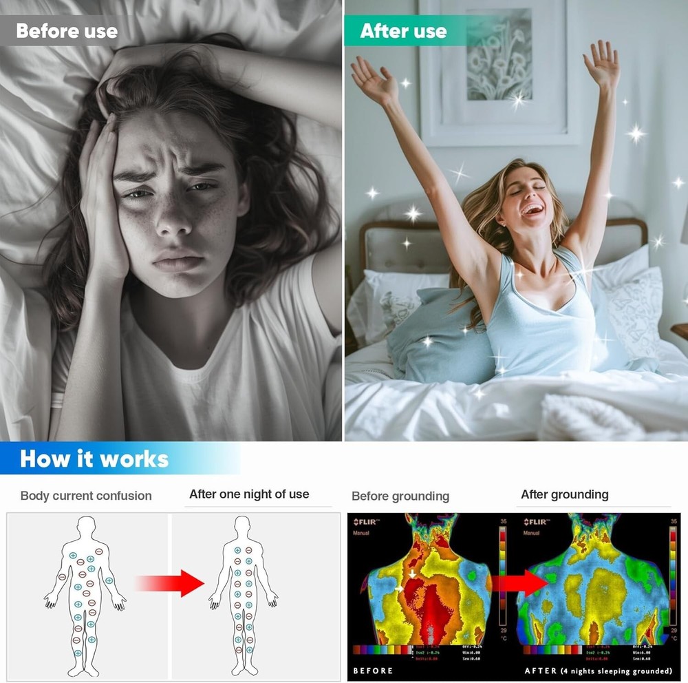 1. These grounding sheets are a game-changer for better sleep! The soft, breathable 95% cotton feels amazing, and the 5% silver weave really helps me wake up feeling refreshed. I noticed deeper sleep and less morning stiffness after just a few nights. The Full XL size fits perfectly, and they stay cool all night. Definitely worth it for anyone wanting to improve sleep naturally!