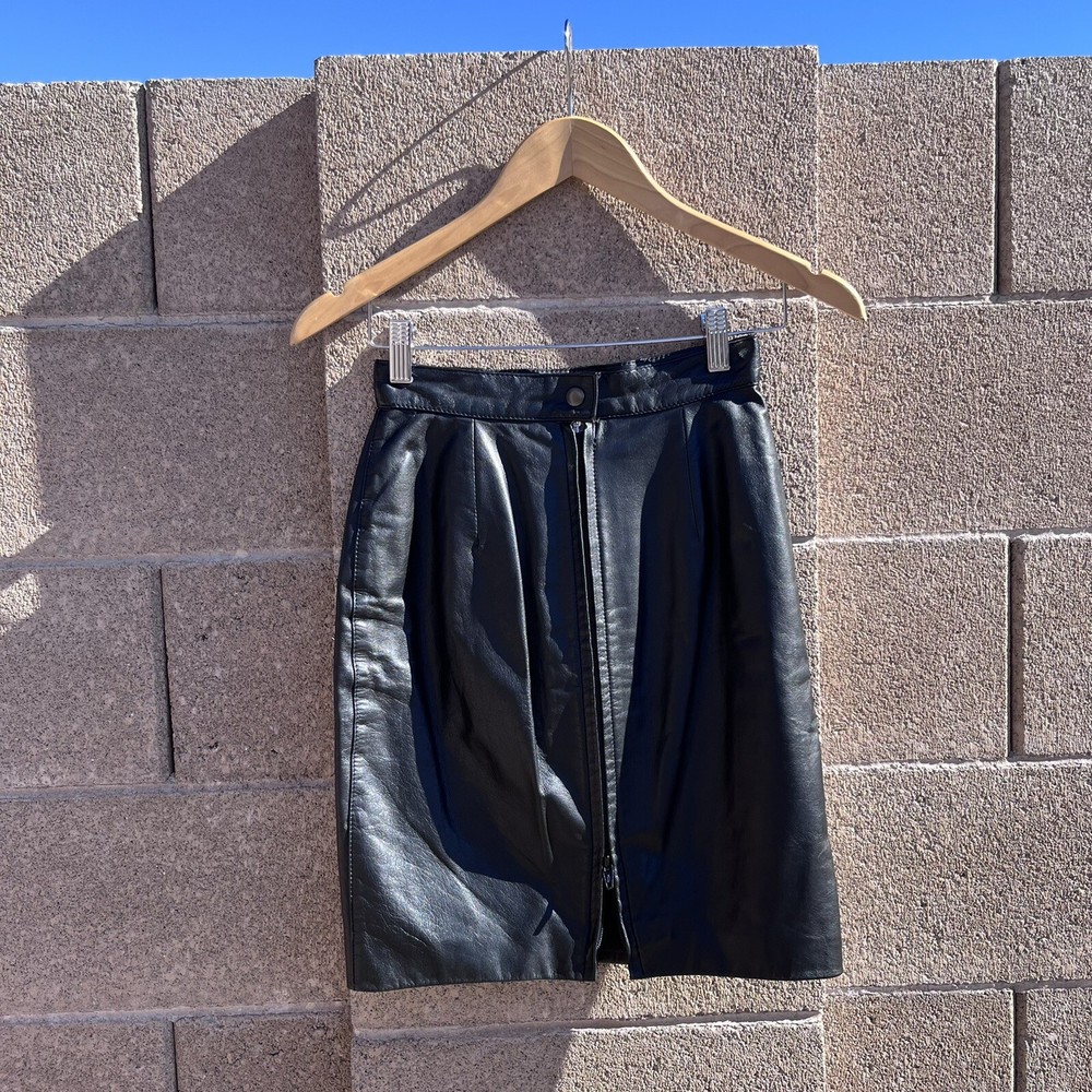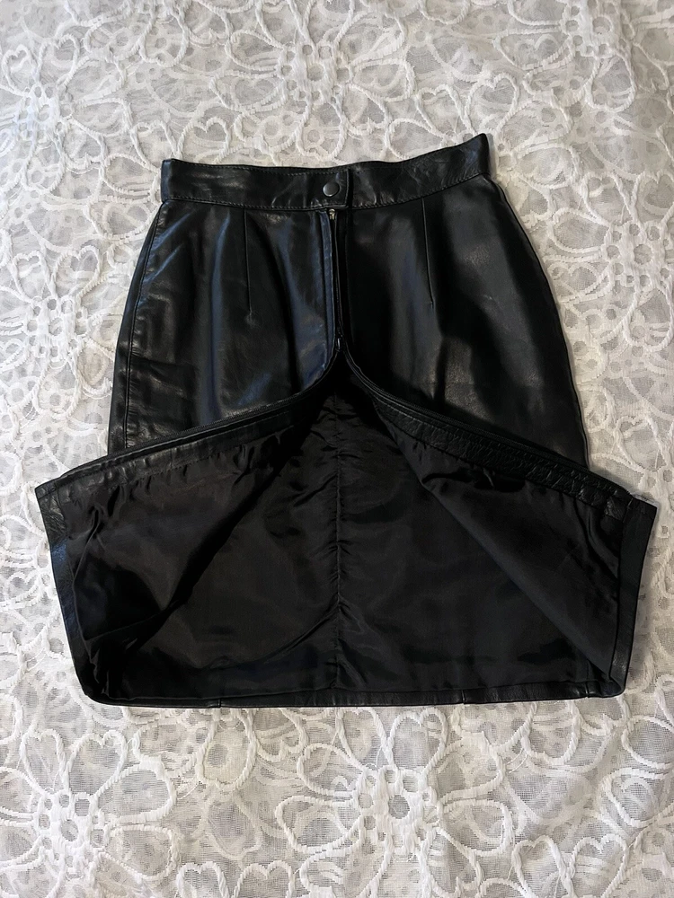 Vintage 90’s mini leather skirt small. Excellent like new condition measurements : 12” flat waist 20” long 17” mid width flat tag is small recommend xs- s or 2/4