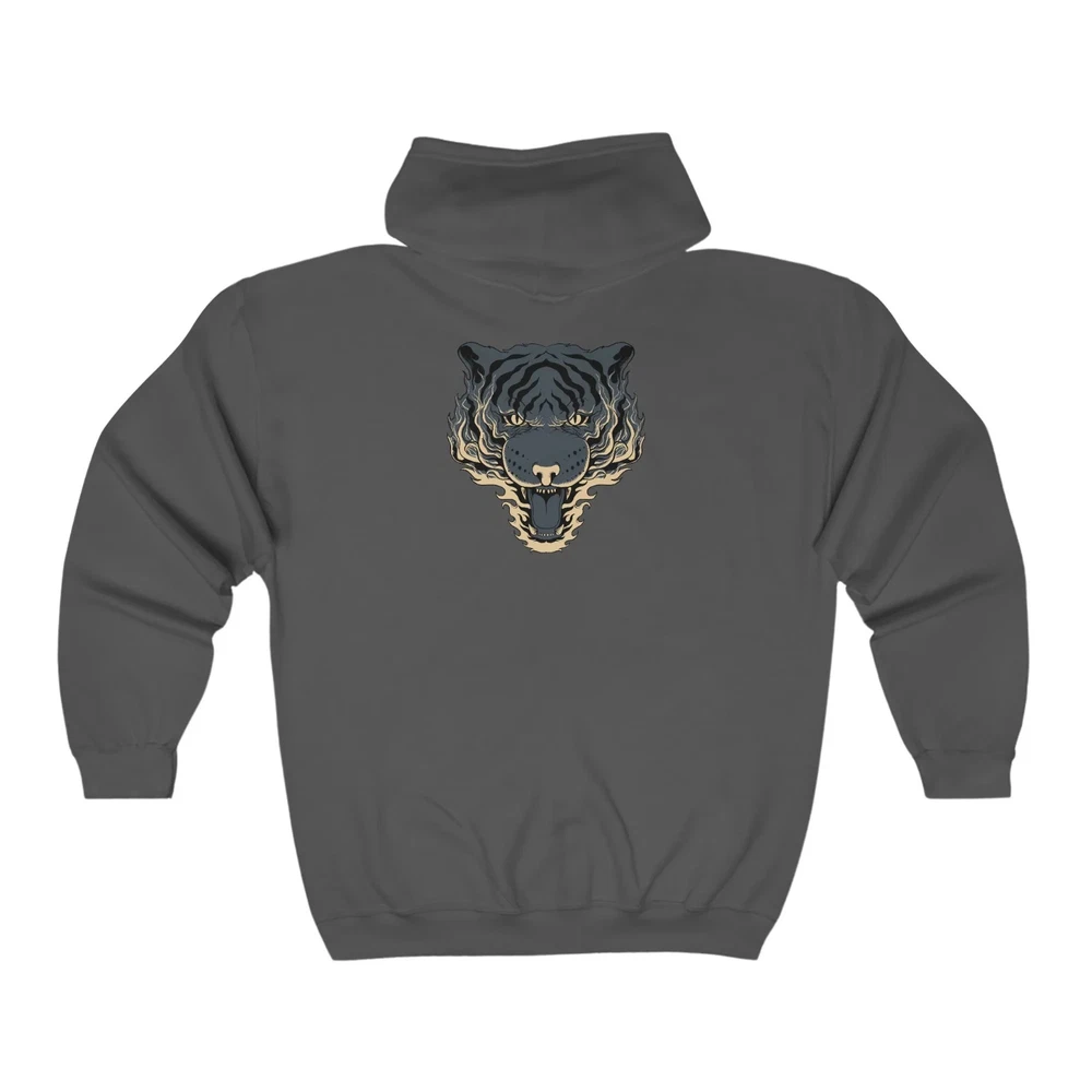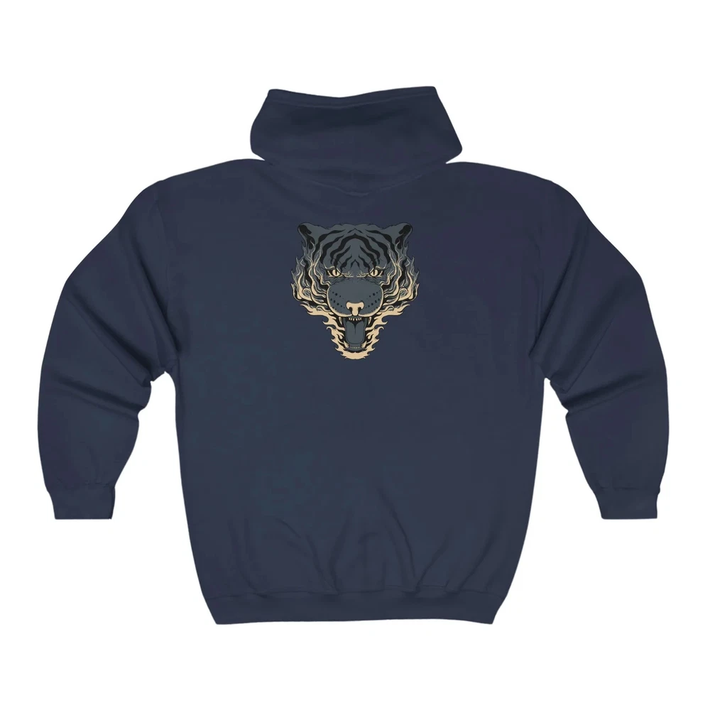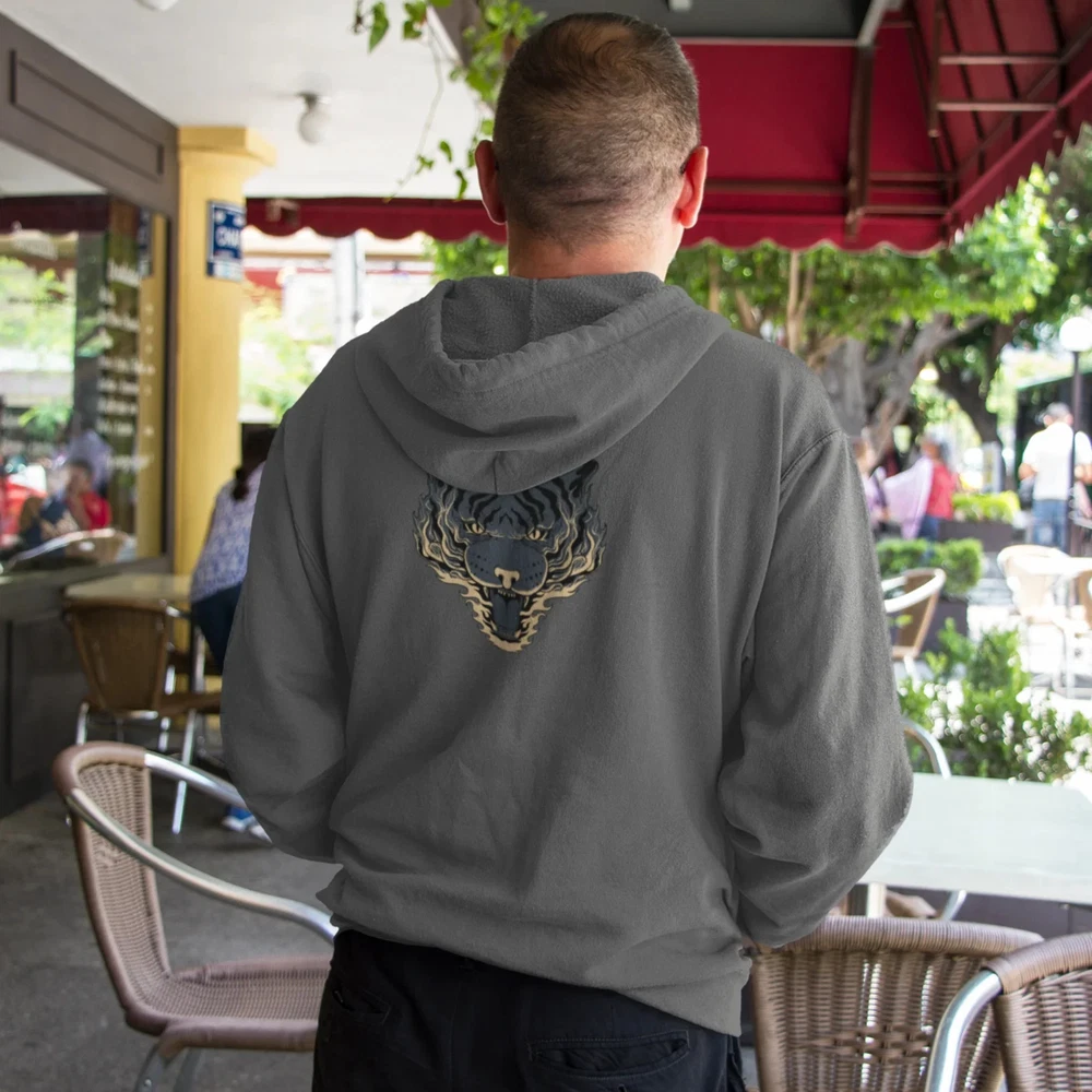 Stay warm and stylish with our Full Zip classic fit tiger back print Hoodie for men. Made with a classic fit design and featuring a unique tiger back print, this hoodie is both comfortable and eye-catching. Perfect for any casual occasion, it will keep you warm and make a Statement. Overview; The classic comfy zip-up, featuring air-jet spun yarn for a softer fleece with reduced pilling. Once put on, it will be impossible to take off. Durable silver-colored metal zipper with metal puller. This heavy blend hooded sweatshirt is relaxation itself. Made with a thick blend of cotton and polyester, it feels plush, soft and warm, a perfect choice for any cold day. In the front, the spacious kangaroo pocket adds daily practicality while the hood's drawstring is the same color as the base sweater for extra style Points. Fabric; Made with a medium-heavy fabric (8.0 oz/yd² (271 g/m²)) that consists of 50% cotton and 50% polyester for that cozy feel and warmth you need in a Hoodie. Fit; The classic fit along with the pouch pocket make for a highly comfortable, scratch-free wearing experience. Adjustable hood with self-colored woven cord and buttonhole openings for the Cord. Fabric blends; Heather Sport colors -may contain more than 50% Polyester.