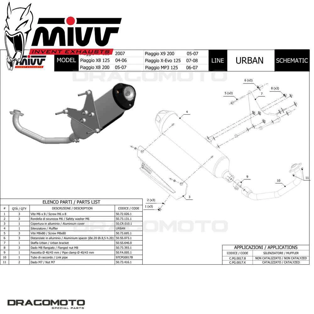 Contacts ebay shop Full exhaust PIAGGIO X8 125 2006 MIVV Urban Exhaust MIVV compatible with PIAGGIO 2006 Stainless Steel - Silver - Approved - Sport design , good details elaborationComplete stainless steel shape, specifically designed to be resistant to high temperatures generated by scooters enginesHuge weight loose unlike genuine system and consequently better bike versatilityAnodized alloy heat shieldMarked sound and at the same time moderate, specifically designed for a road bike useAvailable in catalyzed version. Homologated in compliance with the EU-directivesWell-known brand in MotoGP, absolute guarantee of steady innovation. Exhausts Brakes Helmets Air filters RIZOMA View full image View full image View full image Full exhaust PIAGGIO X8 125 2006 MIVV Urban Exhaust MIVV compatible with PIAGGIO 2006 Stainless Steel - Silver - Approved - Sport design , good details elaborationComplete stainless steel shape, specifically designed to be resistant to high temperatures generated by scooters enginesHuge weight loose unlike genuine system and consequently better bike versatilityAnodized alloy heat shieldMarked sound and at the same time moderate, specifically designed for a road bike useAvailable in catalyzed version. Homologated in compliance with the EU-directivesWell-known brand in MotoGP, absolute guarantee of steady innovation. Information Specifics: Model: URBAN db-killer ( if applicable ) : Not removable Code: C.PG.0017.B Original MIVV product , include components for installation Exhaust Brakes Helmets Air filters RIZOMA Purchase rules Payments Payments with Paypal / credit card Shipping All shippings with courier and tracking number. Returns Return is possible , the rules for return are inside ebay return rules for this sale copyright Dragomoto