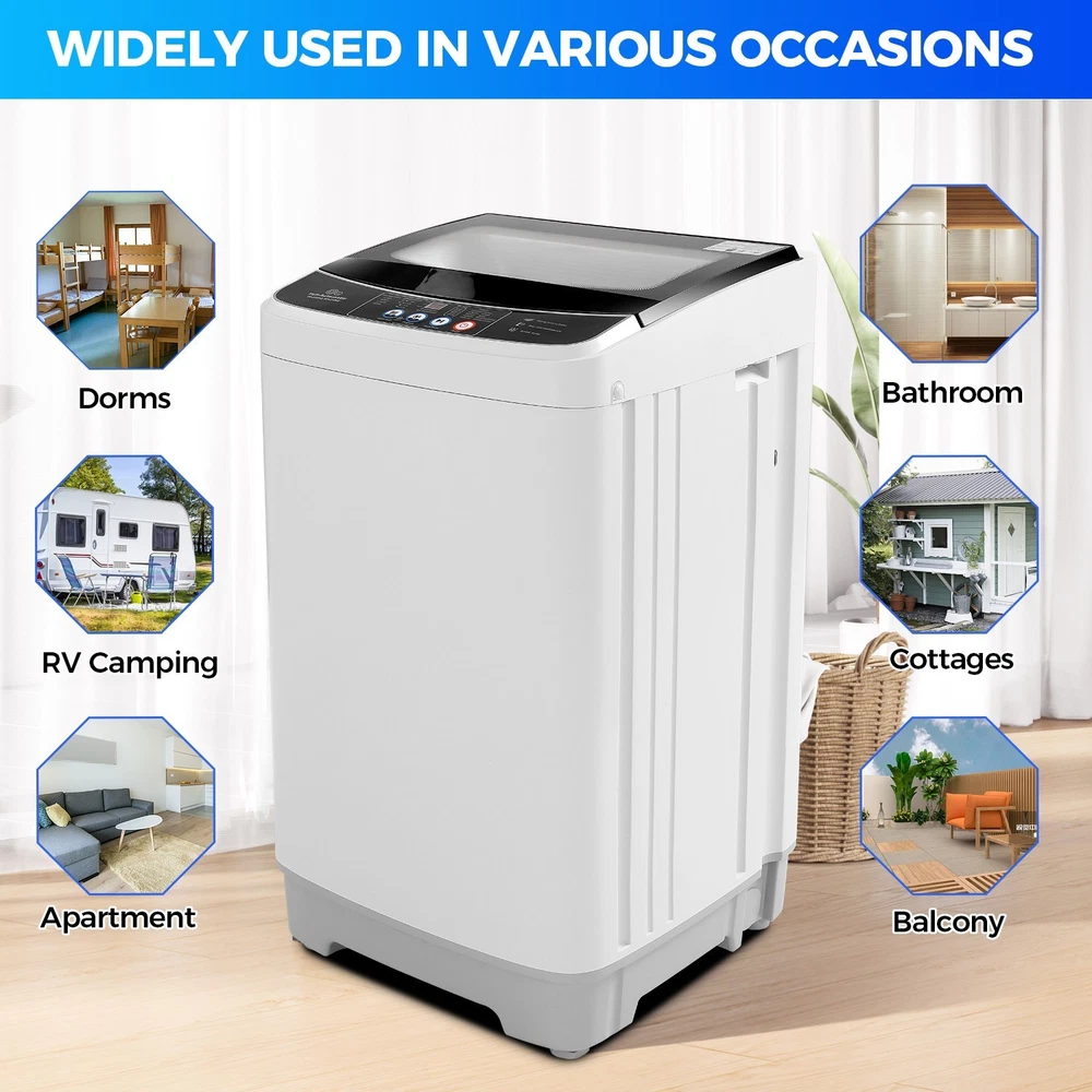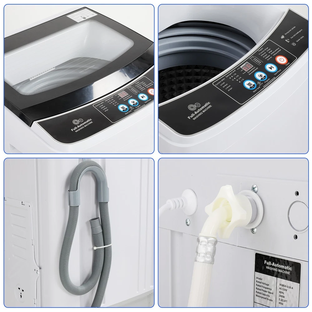 Description 2 in 1 Full Automatic Washing Machine 17.8 Lbs Capacity Portable Washer with Drain Pump, 2.4 Cu.ft Compact Laundry Washer LED Display đ Basic Information: Color: White&Gray Body material: PP plastic Inner barrel material: Stainless steel Size: 18.9 "D x 18.9 "W x 32.8 "H Capacity: 17.8 lbs Access position: Top Loading Scheduled Programs: 10 Water level: 8 Voltage: 110 Volt Display Type: LED Display Cycle Options: Spin Controls Type: Push Button Special Feature: Portable and Lightweight, Child Lock, Full-automatic, Delay Start â Features: â ăCompact and Portableă : Comes with 17.8 lbs capacity, this 2-in-1 full-automatic portable washer can quickly wash and spin dry clothes to meet all your laundry needs. It saves you a great deal of time and optimizes space for you. The compact design of the washer and spin dryer will save your space and 2 side handles make it easy to move, which is perfect for a home, dormitory, campsite, RV, etc. â ăExtreme Energy Savingă : This washer and dryer combo can autonomously detect and correct the imbalance of the clothes to ensure an even washing and effectively remove stains. Adapts the latest motor, which can save 85% of energy compared with similar types, so that can be used for a long time and save money for your family. â ăLED Digital Display & Full-Automatică : This portable washing machine features a versatile and convenient control panel that allows you to start a program by simply choosing the mode you require. With 8 water levels and 10 programs, all functions are clearly displayed. The LED digital display screen clearly shows the wash time. Washing and spinning functions can be used separately, it can quickly wash and spin dry clothes to meet all your laundry needs, totally freeing up your hands. â ă Powerful Washing ă : This compact washing machine is equipped with a high-quality and durable motor that provides stable power and ensures powerful washing. Whether you're dealing with tough stains or large loads, the steady output of the motor ensures excellent wash results and removes up to 90% of water. â ăDelayed start &Transparent Lidă : The 24-hour delayed start feature helps you save even more of your time in your busy life. The safe child lock makes your family life more secure by freezing the control panel to make sure everything goes right. The honeycomb-shaped stainless steel inner tank and fluff stain filter can effectively remove stains and hair on clothes, and reduce clothes wear. Meanwhile, the transparent lid allows you to check the washing/spinning process at any time. đ§ Package Content: 1 x Portable Washing Machine 1 x Instruction Manual 1 x Drain Hose 1 x Inset Hose 1 x Inset Hose Adapter Payment 1 . We accept PayPal only. 2 . Payment should be completed within 4 (Four) days of auction closing. Or unpaid dispute will be filed for closing auction. 3 . Sales Tax of 9% will be applied for orders shipped within the state of California 4 . We will leave a positive feedback immediately after payment is received. We appreciate a positive feedback as much as you do. If for some reason there is any issue with the purchase, please contact us prior to leaving feedback, and we will be glad to work with you to have it resolved. Shipping 1 . We Ship to United States ONLY. 2 . Ship from two warehouses and only to eBay ADDRESS. Package handling only takes 1 business day at our warehouse, so please make sure entering correct payment and shipping information before checking out. Once your payment is completed, pls leave ebay note if the changes are needed before we send the product. 3 . Truck company: 3-8 business days. | USPS: 2-6 business days. | UPS/FEDEX: 3-5 business days. 4 . Lccal pick up is available. Warranty and Guarantee 1 . All of our items come with a 30-day return policy. We ensure all our items are new and in excellent condition prior to shipping. In the event that you receive the item that is not to the standards above, please contact us via e-Bay messages. All returns must be in new original condition as received and should be shipped with delivery confirmation 2 . We ONLY accept the return for original package. Please make sure that item has NO man-made sabotage. Used items will not be accepted for return. 3 . We reserve the right to refuse any returns for objective reasons. 4 . All NON-seller mistake returns for refund are subject to 20% re-stocking fee and buyer should pay for the round-trip shipping fee. (E.g. you bought wrong model or wrong color). Feadback 1 .Any problem after receiving our goods,please contact us before leaving Neutral/Negative feedback.We promise to help you solve it asap,and make you feel satisfactory absolutely. 2 . Please DO NOT leave negative feedback without asking for help. Please do not leave negative or neutral feedback if you haven't received item in 30 days, because we have mentioned the shipping time repeatedly.