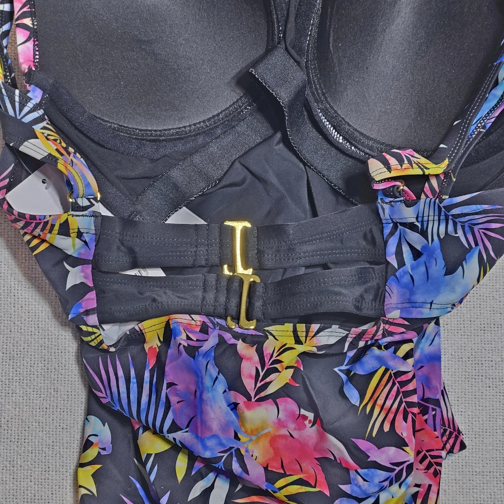 $ 6.34Kona Sol Tropical Print Long Sleeve One Piece Swimsuit Black NWT Sz L