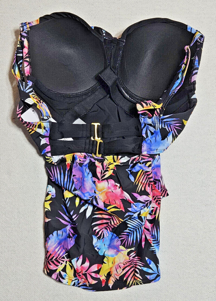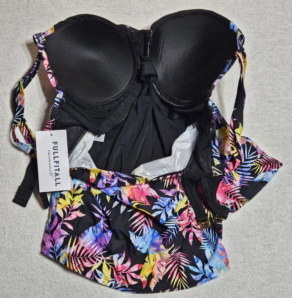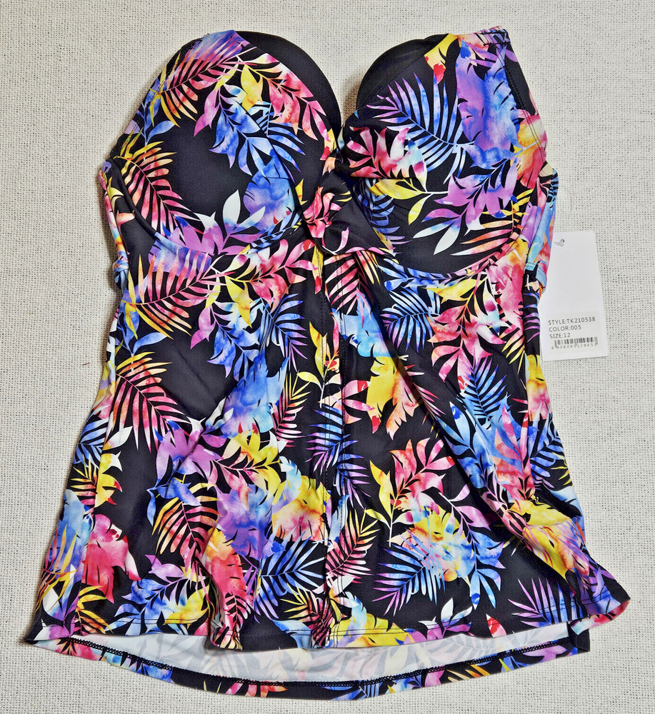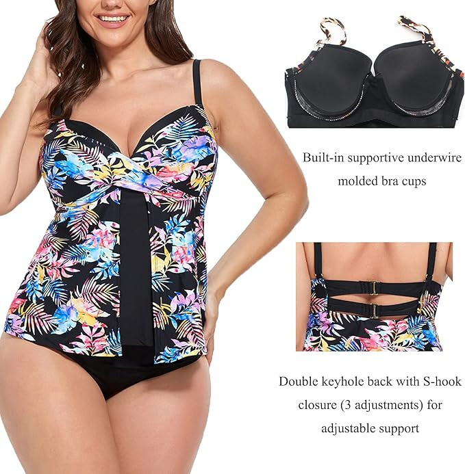 The Fullfitall Tropical Tankini Swimwear is a stylish and flattering choice for women in plus size 12. Featuring underwired tops with a floral pattern and adjustable spaghetti straps, this tankini offers both support and comfort. Made from a blend of nylon and spandex, the swimwear provides a comfortable and secure fit with features like built-in bra, tummy control, and padded cups. The multicolor tropical theme adds a fun and vibrant touch to your summer wardrobe, making it a must-have for any beach or poolside outing.