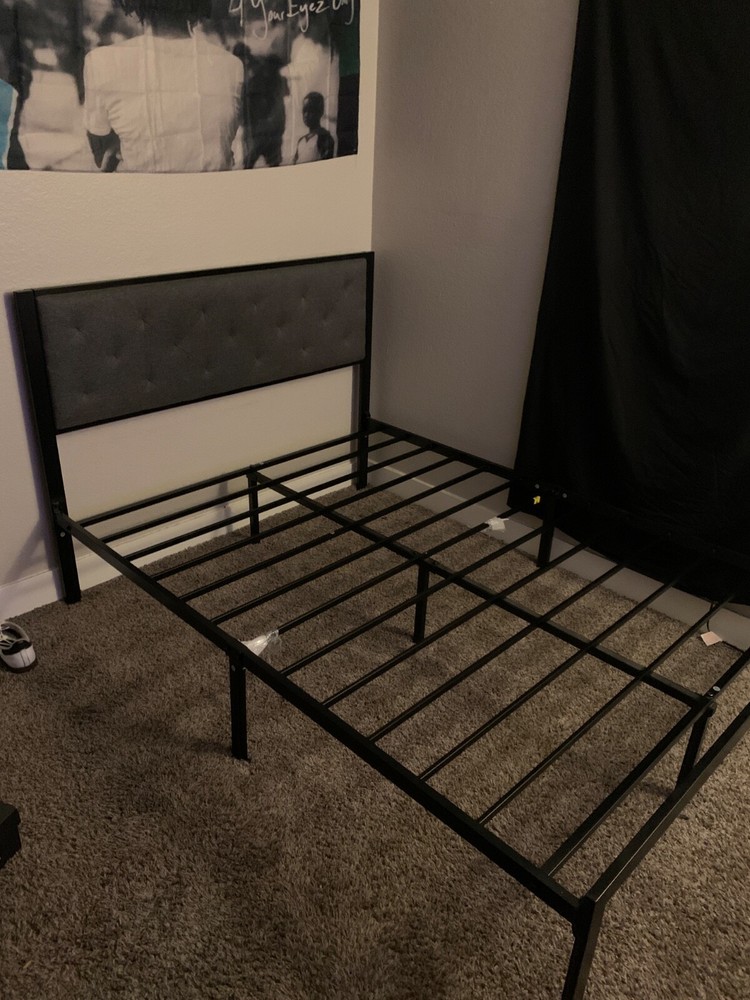 Black and grey metal full size bed frame