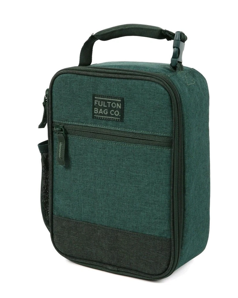 The Fulton Bag Co. Upright Lunch Bag in Dark Emerald is a stylish and compact lunch bag measuring 9 inches in height and 6.5 inches in width. This product is designed for carrying your meals and snacks while on the go, with a dark emerald green color that adds a touch of sophistication to your lunchtime routine.
