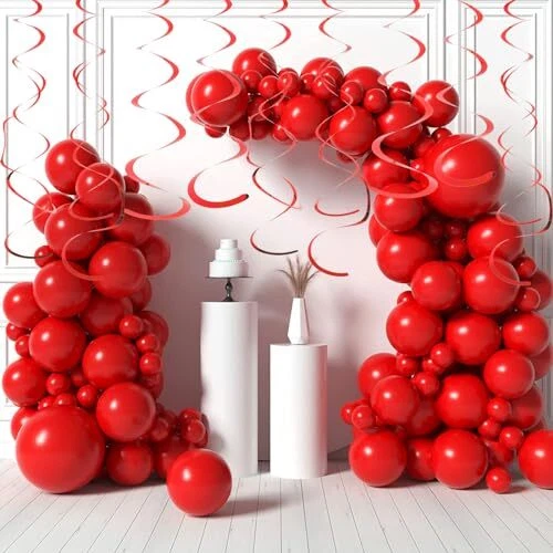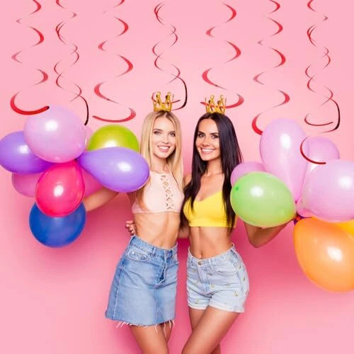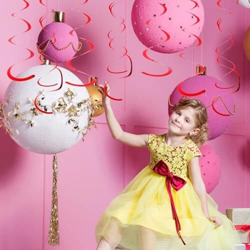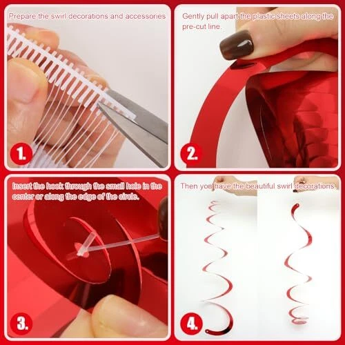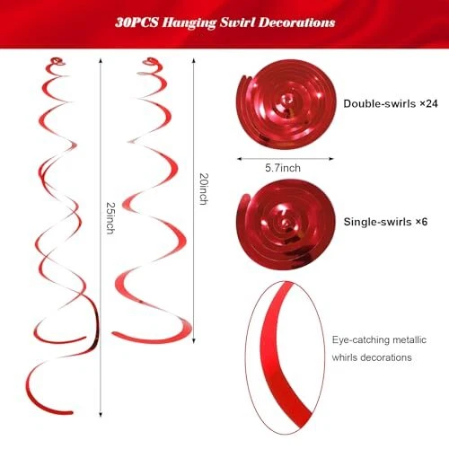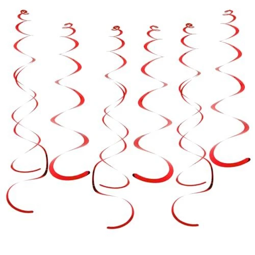 Fumwase Party Swirl Decorations Shinny Foil Hanging Swirl Decorations Red