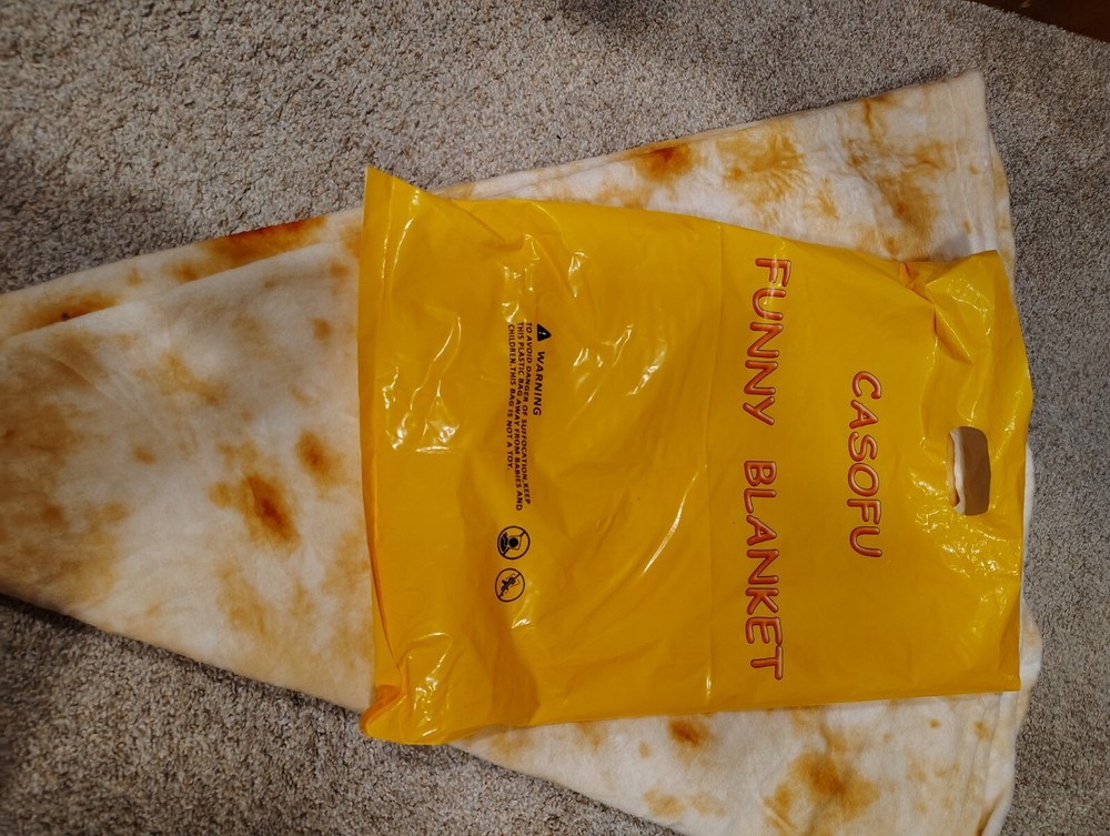 Fun And Warm Wrap ..Brand new 74" round taco print blanket. Non Smokers