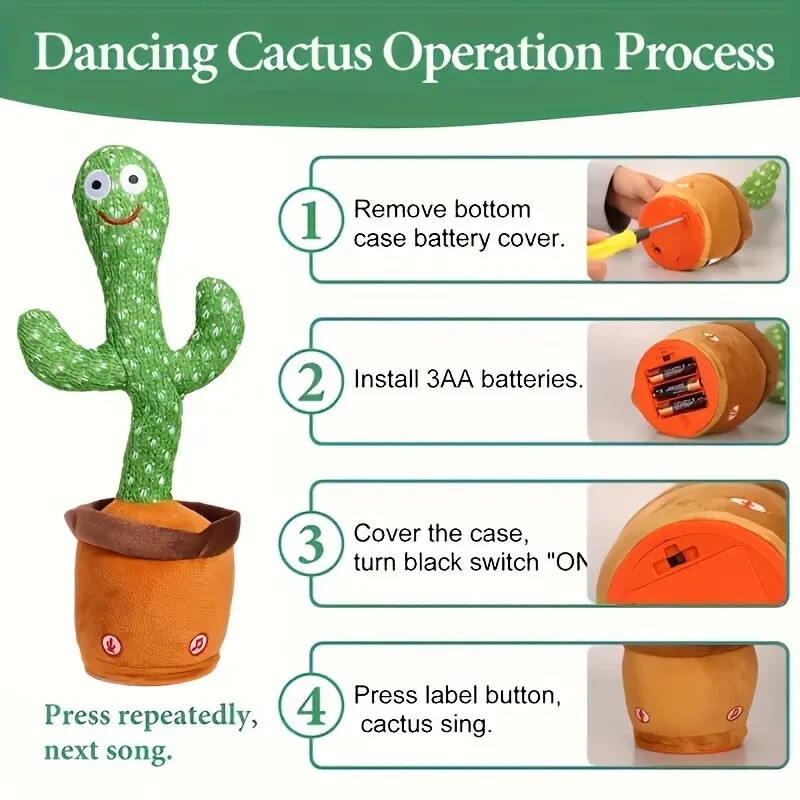 Fun Dancing Cactus Plush Toy with Light Up and Repeat Talking for Kids Gift
