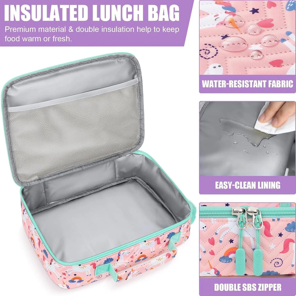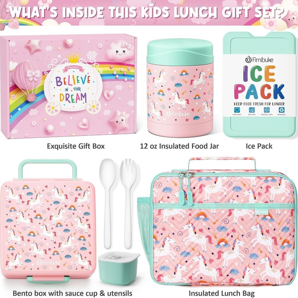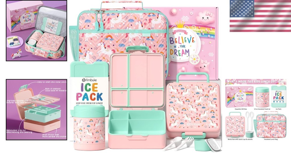Fun Unicorn Kids Lunch Box Set with Bento, Thermos & Insulated Bag - Gift Ready