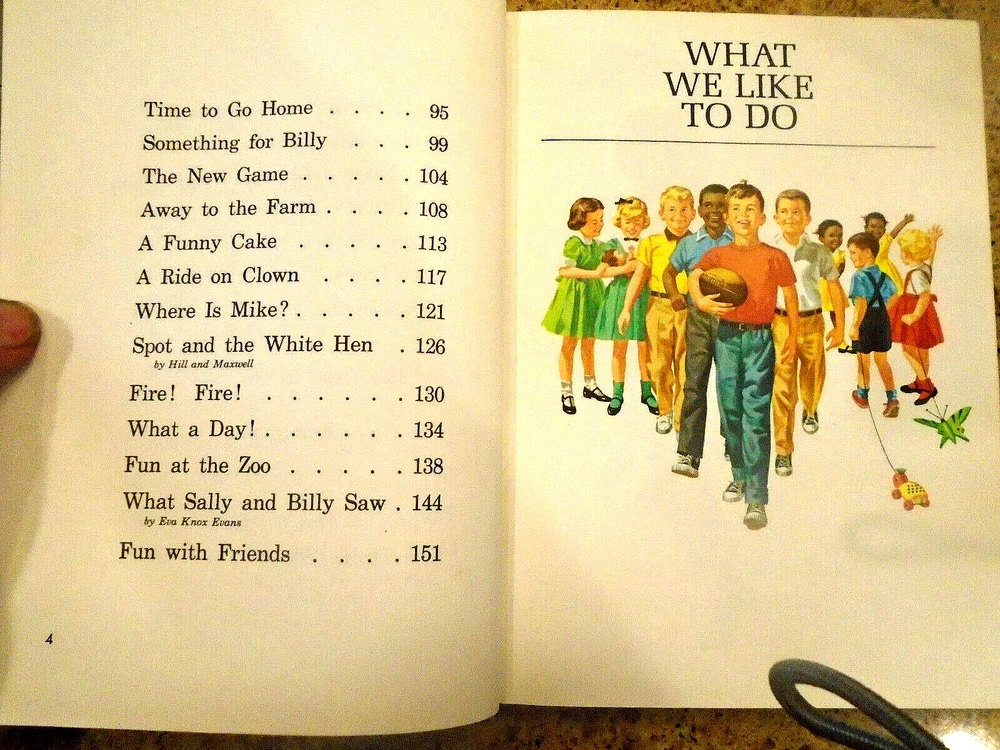 Here is a 1965 issued " FUN WITH OUR FRIENDS " from the iconic " The New Basic Readers series" . Hard back book, First Edition. I see some ink scribble on books cover. No damaged, torn pages. Wonderful color illustration. Item shipped via USPS MEDIA RATE. Perhaps you would like to add this piece to your vintage children's library