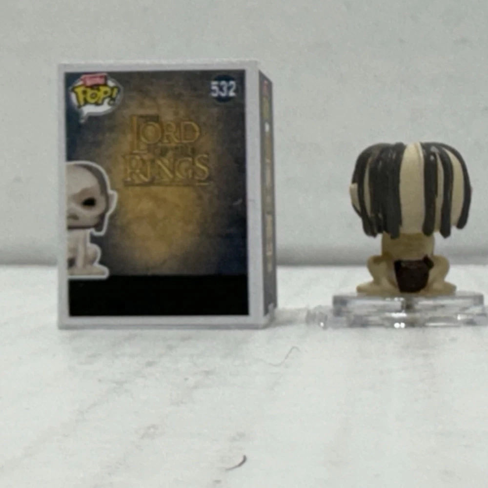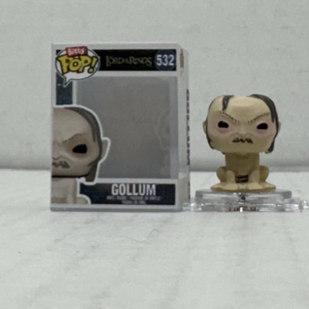 Packaging:Original (Unopened)Model:Funko Bitty PopExclusive Event/Retailer:FunkoNumber in Pack:1Collection:MoviesMaterial:VinylProduct Line:Bitty Pop!Franchise:The Lord of the RingsMovie:The Lord of the Rings - The Fellowship of the RingType:Vinyl FigureCharacter:Frodo Baggins, GollumSeries:The Lord Of The Rings Series 1Size:MiniBox Number:532Theme:MoviesRelease Year:2024Brand:Funko