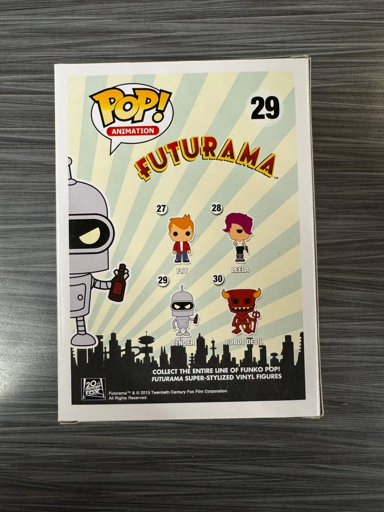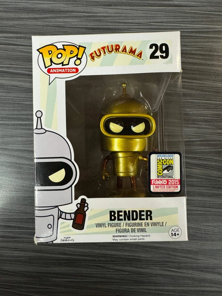 Funko POP! Animation: Futurama - Bender (2015 SDCC)(Damaged Box) #29 -Window Display Box -3 3/4 inches tall -Ages 3+ Funko POP! Animation: Futurama - Bender (2015 SDCC)(Damaged Box) #29 -Window Display Box -3 3/4 inches tall -Ages 3+ × × × × × × × × × Buy now and save! Tell a friend Visit store Watch now Postage info Click the Postage tab above the listing description for more info Price: $10.00 (local shipping) Click the Postage tab above the listing description for more info! Additional delivery notes PICK UP OPTION Sorry, our items are NOT available for pick-up. PAYING VIA PAYPAL We accept PayPal on our all our items so you can shop with confidence. Simple choose the PayPal option when proceeding through the checkout. Additional Information No additional information at this time Ask seller a question You might also like Funko POP! Marvel: Silk (2022 Summer Convention) #1064 Funko POP! Television: Peacemaker - Eagly (Flocked)(Amazon) #1235 Funko POP! Animation: My Hero Academia - Kurogiri (GiTD)(Target) #789 Funko POP! Deluxe: Stranger Things - Eleven in The Rainbow Room (Target) #1251 Contact To contact our Customer Service Team, simply click the button here and our Customer Service team will be happy to assist. Ask seller a question © The Pop Plug Postage Shipping is a flat rate across US at a rate of $10.00 Payment Accepted Payment Methods PayPal Returns Returns are not accepted Buyer will pay for return shipping. eBay integration by