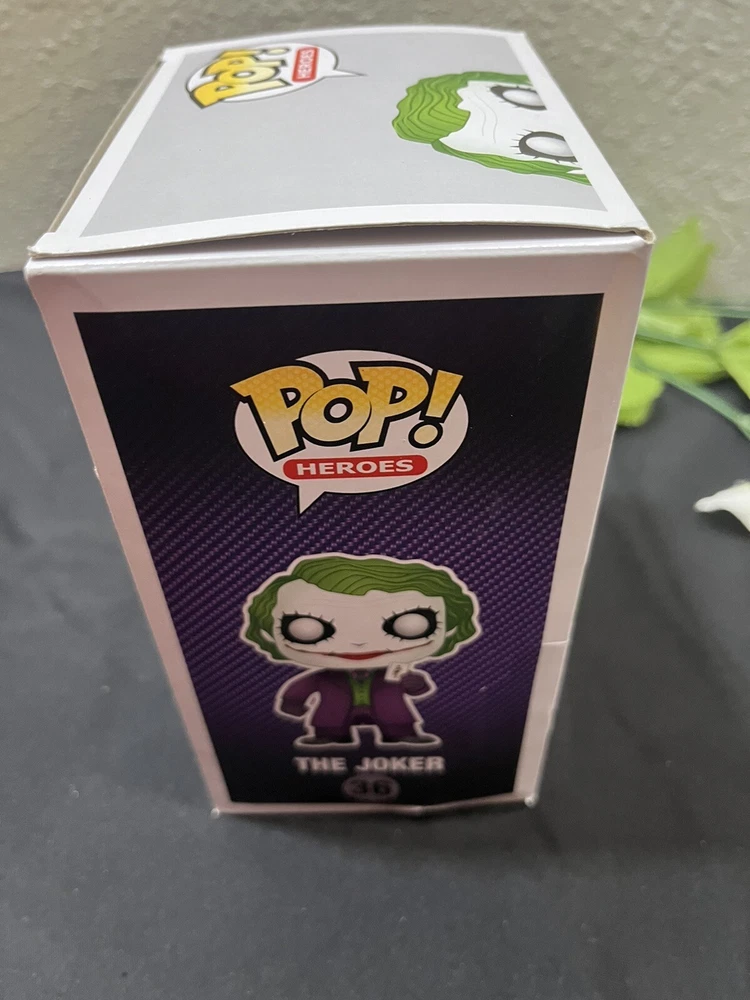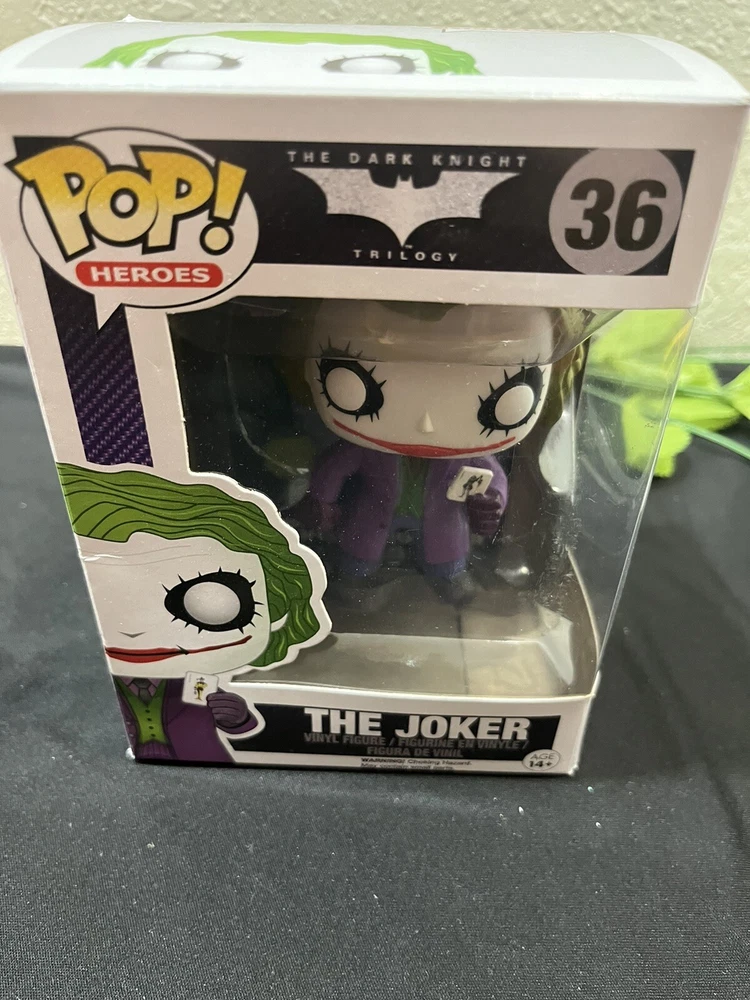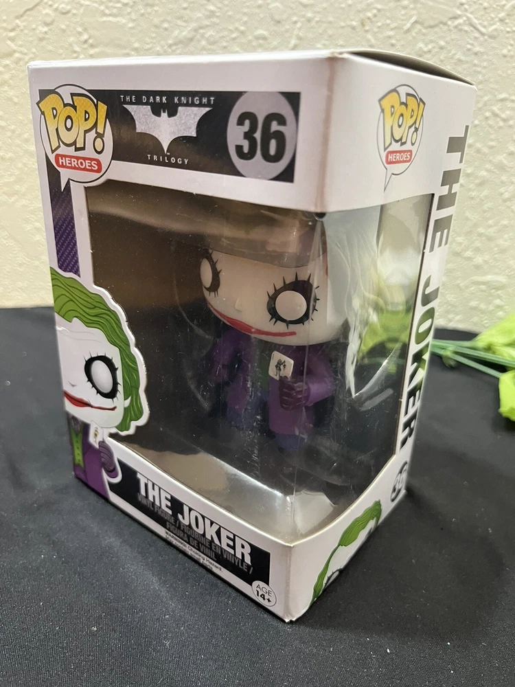 Introducing the Funko POP Joker vinyl figure from the Dark Knight S1 series. This highly collectible figure features the iconic Heath Ledger portrayal of the Joker in the DC Universe. Made of high-quality vinyl material, this Pop! Vinyl figure stands at approximately 3.75 inches tall and comes in box number 36. Perfect for fans of the Batman movies and comics, this Funko POP Joker figure is a must-have addition to any collection. With its detailed design and vibrant colors, it's sure to impress. Don't miss out on the chance to own this amazing piece of memorabilia.