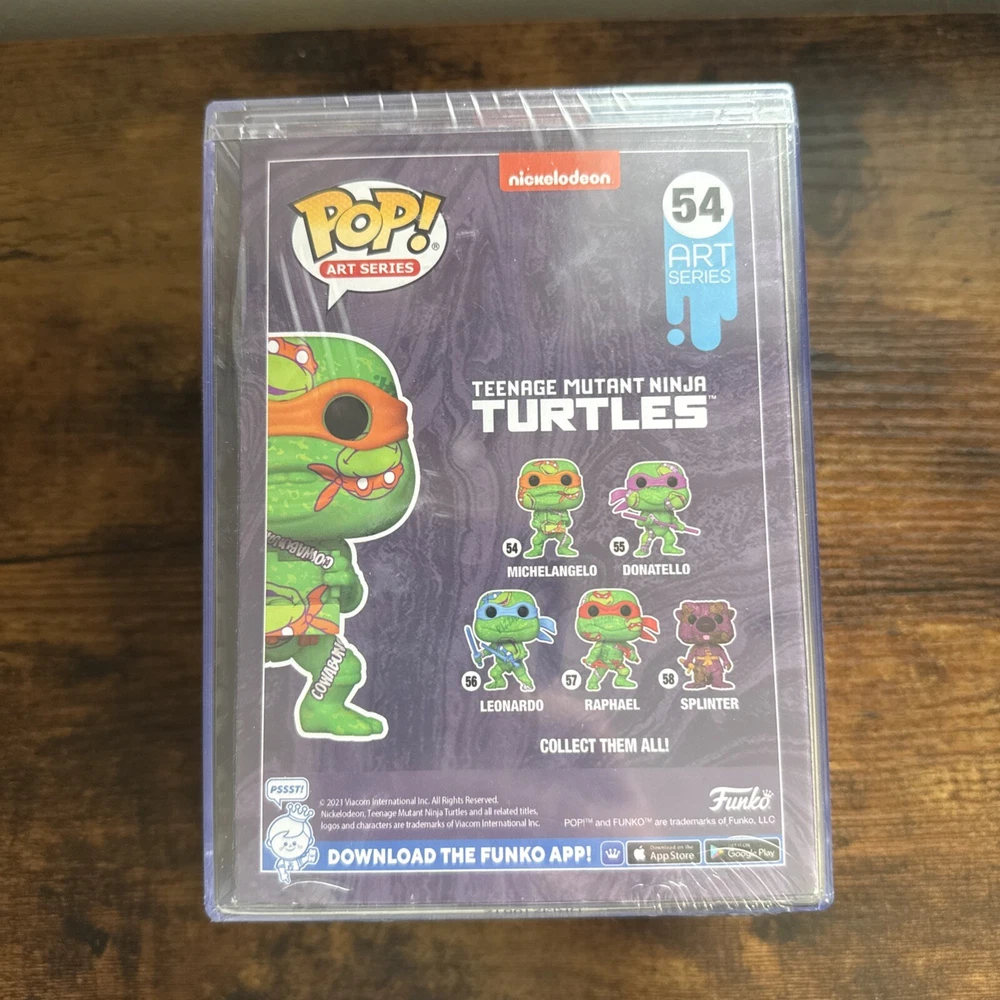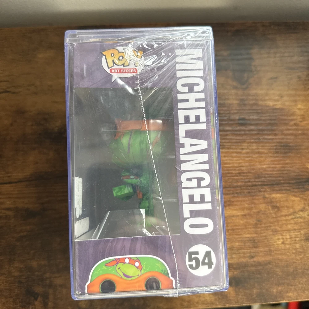 Add the Funko Pop! Art Series Teenage Mutant Ninja Turtles #54 Michelangelo Target Exclu to your collection. This vinyl figure is a must-have for any fan of the Teenage Mutant Ninja Turtles franchise. The colorful and detailed design showcases Michelangelo in his signature pose, and the exclusive Target release adds to its value. The figure is made of high-quality vinyl and comes in its original packaging, unopened and with a protector. The Funko Pop! Art Series Teenage Mutant Ninja Turtles #54 Michelangelo Target Exclu is suitable for collectors of all ages, with an age level of 3+. It is part of the Pop! product line and has a box number of 54. The figure is made in Vietnam and is an excellent addition to any collection of collectible figures and bobbleheads.