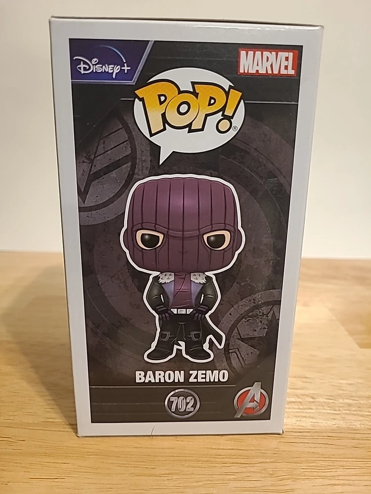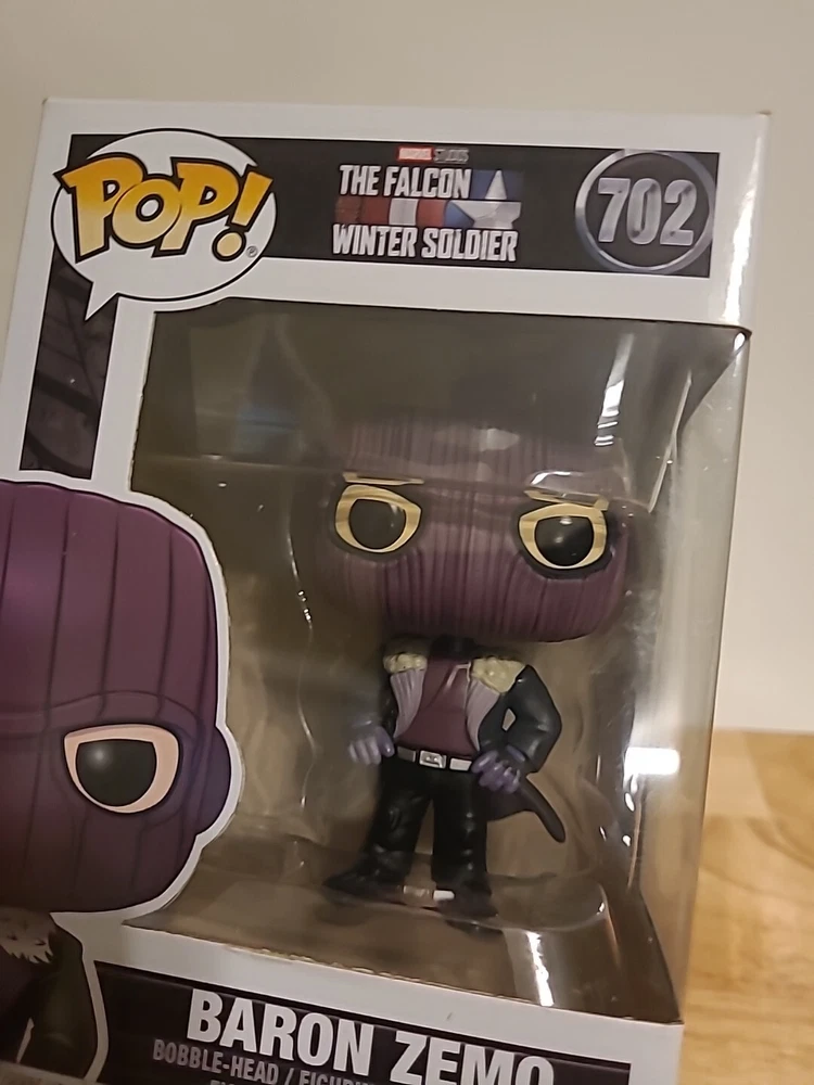 Enhance your Marvel collection with the Funko Pop! Baron Zemo #702 from "The Falcon and the Winter Soldier" series. This vinyl bobblehead features the iconic villain in his intricate costume, as seen in the hit Disney+ show. A must-have for fans, this piece captures the essence of Baron Zemo, down to the chilling detail of his mask. Not just a display-worthy collectible, this model comes with a dedicated protector to keep it pristine. Released in 2020, it's part of the highly sought-after Pop! Vinyl line, and being vaulted adds to its exclusivity. Whether for display or as part of a larger collection, this Funko figure is a standout piece commemorating the thrilling "Captain America: The Winter Soldier" movie and the compelling TV show it inspired.