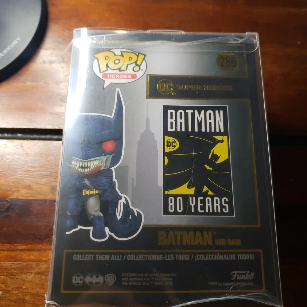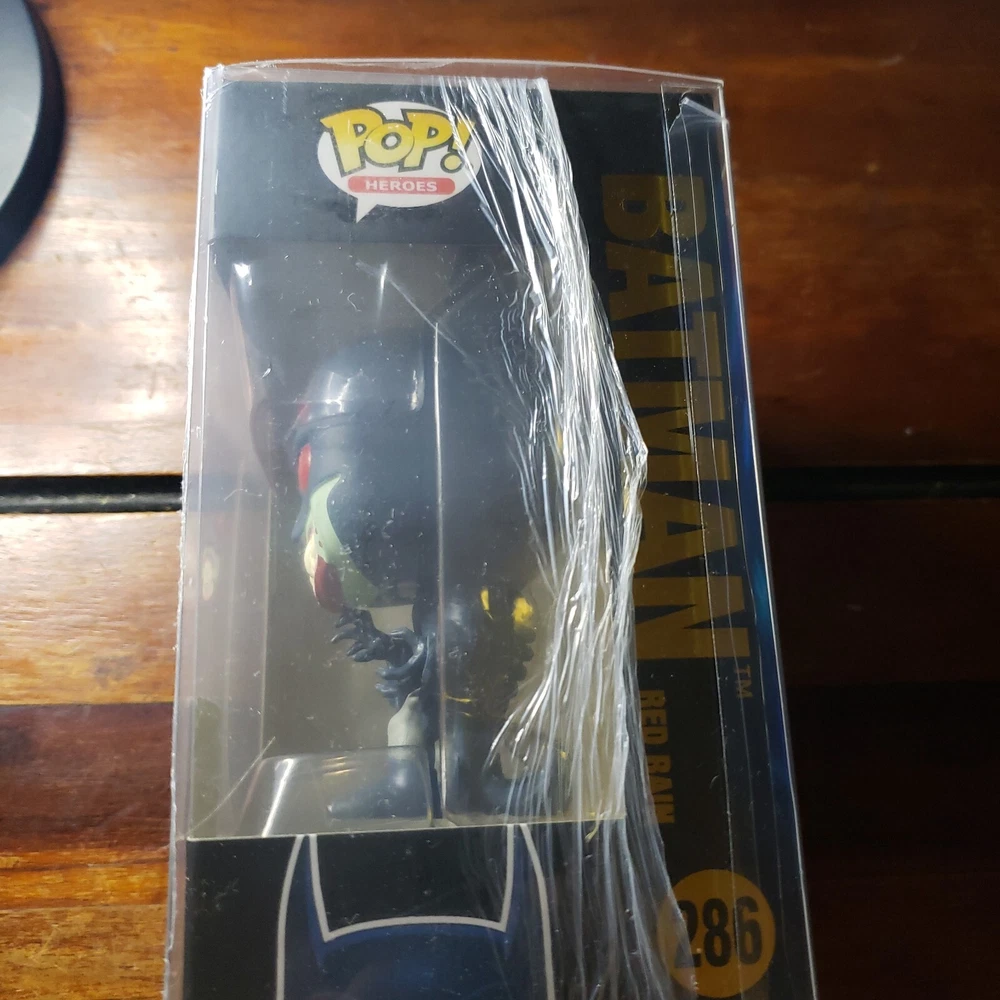 Introducing the Funko Pop Batman Red Rain Vinyl Figure #286, a must-have addition to your collectible figures collection. This figure features the iconic Batman character in a unique red rain design, made with high-quality vinyl material that ensures its durability and longevity. It belongs to the Pop! Vinyl product line, which is known for its popularity and wide range of designs. This Funko Pop Batman figure is perfect for fans of the Batman franchise, as well as collectors of vinyl figures. Its sleek and stylish design, along with its high-quality material, make it a great display item for your home or office. Add it to your collection today and enjoy the iconic appeal of the Batman character.