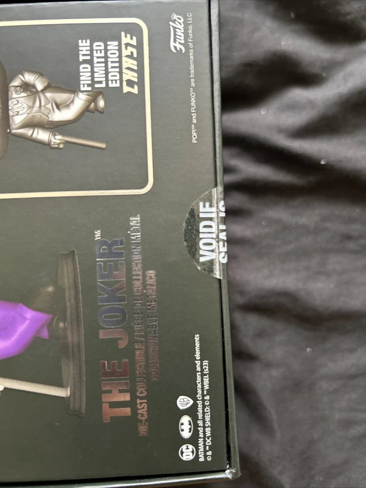 Introducing the Funko Pop! Diecast figure of The Joker from DC Comics 2023 Q3. This exclusive collectible features the iconic character in a die-cast format, perfect for any fan of comics or the DC Universe. The box number for this figure is 10 and it comes from the popular Pop! Diecast collection by Funko. This vinyl figure is a must-have for any collector or enthusiast of The Joker or DC Comics. With its intricate details and high-quality design, it's sure to be a standout addition to any collection. Don't miss out on the chance to own this exclusive Funko Pop! Diecast figure.