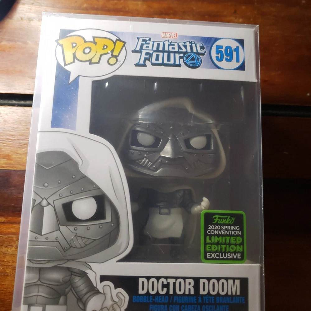 Get your hands on the Funko Pop! Doctor Doom #591 2020 Spring Convention Exclusive vinyl figure. This standard-sized, original and unopened packaging makes it a perfect addition to your Marvel collection. The Funko Pop! features Doctor Doom from the Fantastic Four franchise, and is made of high-quality vinyl material. This Marvel character is a 2020 release, and was manufactured in Vietnam. The box number is 591, and it is part of the Pop! product line. The figure is perfect for fans of the Fantastic Four movie, TV and streaming show, and comics. Don't miss out on the opportunity to own this exclusive Funko Pop! vinyl figure.