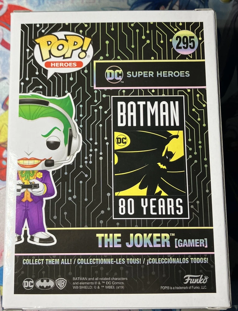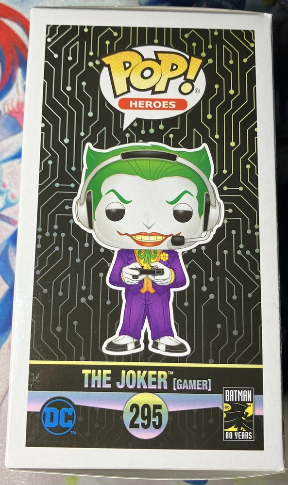 This is a GameStop exclusive pop of The Joker with a pin included. Couple of small box issues (see last 2 images) not visible from the front. Ships in a soft protector.