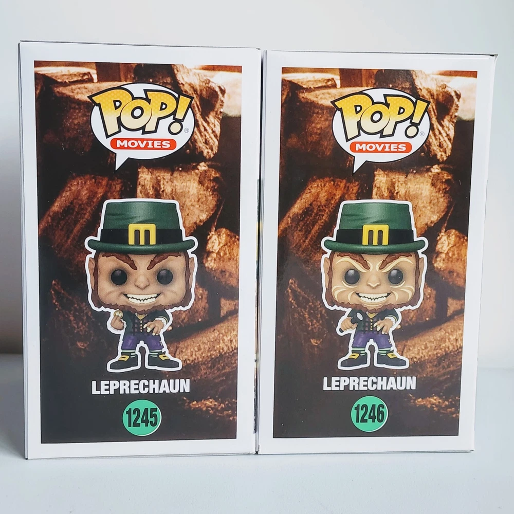 This Funko Pop set features two exclusive Leprechaun figures, #1245 and #1246, from the popular horror movie franchise. Made of vinyl material, these figures are sold in a box that may be damaged. The set is a FYE exclusive, making it a rare find for collectors. The figures are part of the Pop! product line and come with a protector to keep them safe. They also glow in the dark, making them perfect for display in any horror-themed collection. With its unique features and rare status, this set is a must-have for any Leprechaun fan or collector.