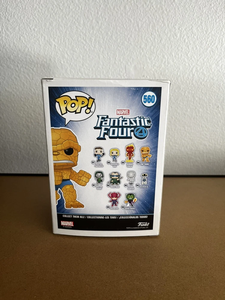 This Funko Pop! Marvel Fantastic Four 4 The Thing #560 vinyl figure is a must-have for any Marvel or Fantastic Four fan. With intricate details and a dynamic pose, this figure captures the essence of the beloved character. Made from high-quality vinyl and featuring the iconic Funko Pop! design, this figure is a true collector's item. Whether you're a fan of the comics or the movie, this figure is a great addition to any collection. From the Marvel Collector Corps to the Pop! Vinyl product line, this figure is sure to impress. Don't miss your chance to own this exclusive piece of Marvel memorabilia.
