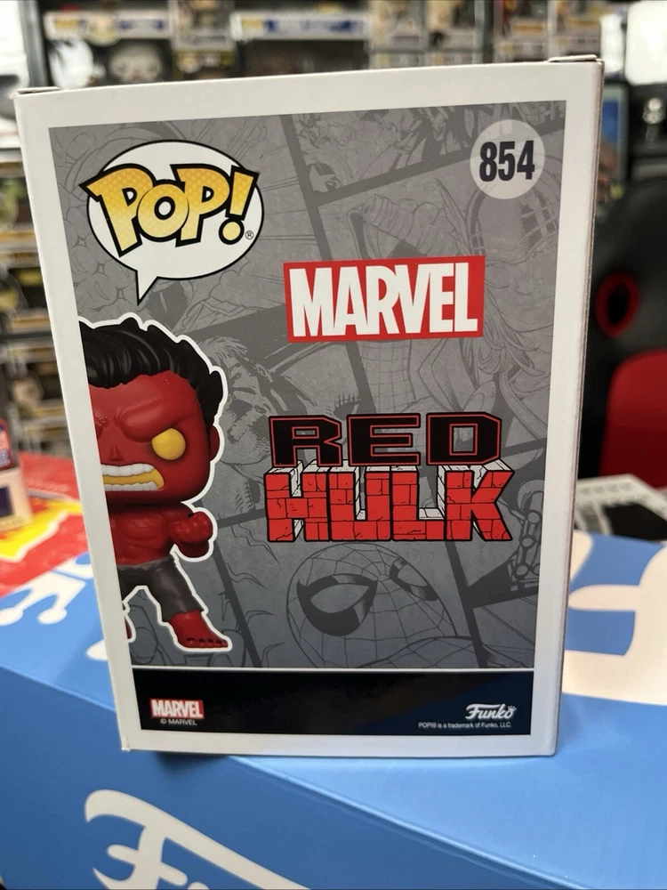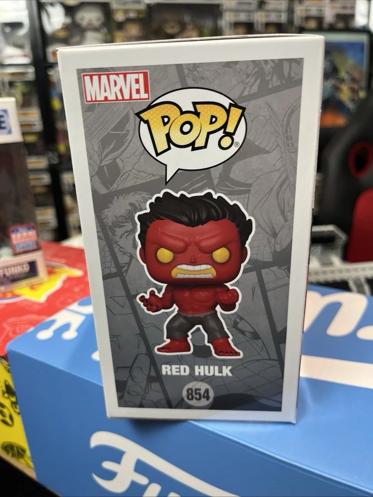 Unleash the power of the Red Hulk with this exclusive Funko Pop! Vinyl figure, a must-have for any Marvel enthusiast. This collectible, bearing the distinctive Funko Pop! box number 854, hails from the Marvel Comics 2021 Q2 series and is crafted from durable vinyl, showcasing the vibrant red hue synonymous with this rampaging character. Exclusively available through Hot Topic, this Red Hulk figure stands out with its unique Pop! Vinyl design, capturing the essence of the comics' artwork. Whether for display or as part of a larger collection, this piece is a standout tribute to the Marvel franchise and a prized find for fans and collectors alike.