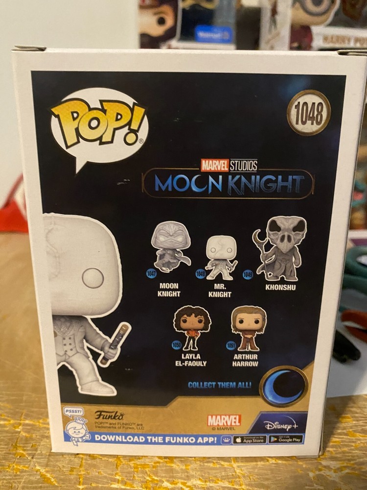 ALL BUYERS WITH LESS THAN 10 POSITIVE FEEDBACK MUST CONTACT ME TO VERIFY PURCHASE BEFORE PURCHASING OR ELSE ORDER WILL BE CANCELLED. WELCOME TO SMUGGLER'S CARGO TOYS & COLLECTIBLES Here at Smuggler's CARGO we offer toys and collectibles of all kinds. Action figures, toy vehicles, graded comics, sculptures and busts, and everything in between. For sale is the Funko Pop Vinyl of MR KNIGHT from the show MOON KNIGHT. I do not see any issues or damage, a C9+. ***Payment must be received within 3 days of auction ending. Please feel free to ask any questions regarding this item or any other items I have for sale in my store. S&H is based on location. All items are packed with the utmost care so the item arrives to you in the condition as described. I DO combine shipping on multiple auction wins, contact me for details.**** INTERNATIONAL BIDDERS WELCOME!
