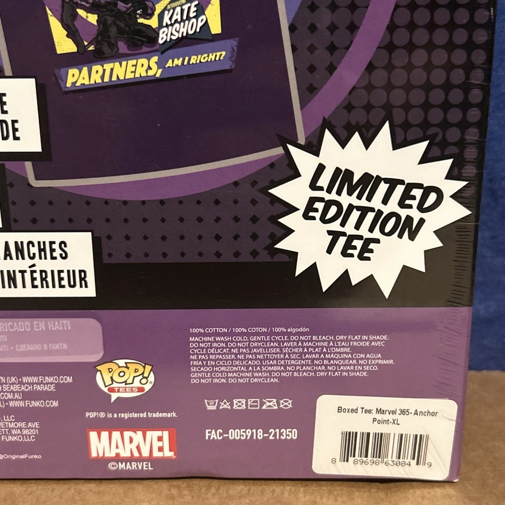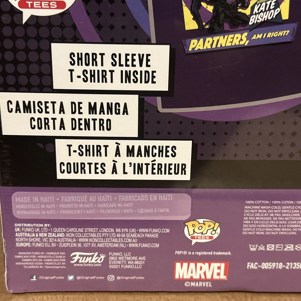 This limited edition Funko Pop! TEES Hawkeye T-shirt is a must-have for any Marvel Studios fan. The shirt features a vibrant multicolor design with the iconic Hawkeye character. Made from 100% cotton, this unisex T-shirt is perfect for everyday wear and all seasons. With its short sleeves and comfortable fit, this XL size T-shirt is a great addition to any wardrobe. Whether you're a Marvels Avengers enthusiast or just love the Hawkeye character, this T-shirt is a great choice. Get yours today and show off your love for Marvel Studios!