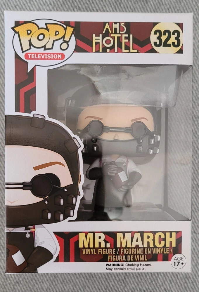 The Funko Pop! Television Vinyl: American Horror Story Hotel - Mr. March #323 is a must-have collectable figure for fans of the American Horror Story franchise. This Pop! figure features the character Mr. March from the Hotel season, captured in intricate detail with a vinyl material. Perfect for adding a touch of horror and mystery to any collection, this figure is a great addition for collectors of television memorabilia.