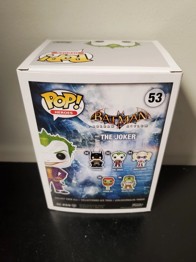 Series: DC Features: Vaulted, Exclusive Type: Vinyl Figure, Pop! Vinyl gtin13: 0889698423373 Box Number: 53 Theme: Video Games, Comic Books Exclusive Event/Retailer: Target Seller Notes: “Good condition pop, minor scuffs on the front and side plastic of the box, minor back corner wear” MPN: 42337 UPC: 0889698423373 Product Line: Pop! Vinyl Character: The Joker Brand: Funko Franchise: Batman: Arkham Asylum