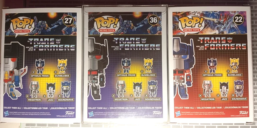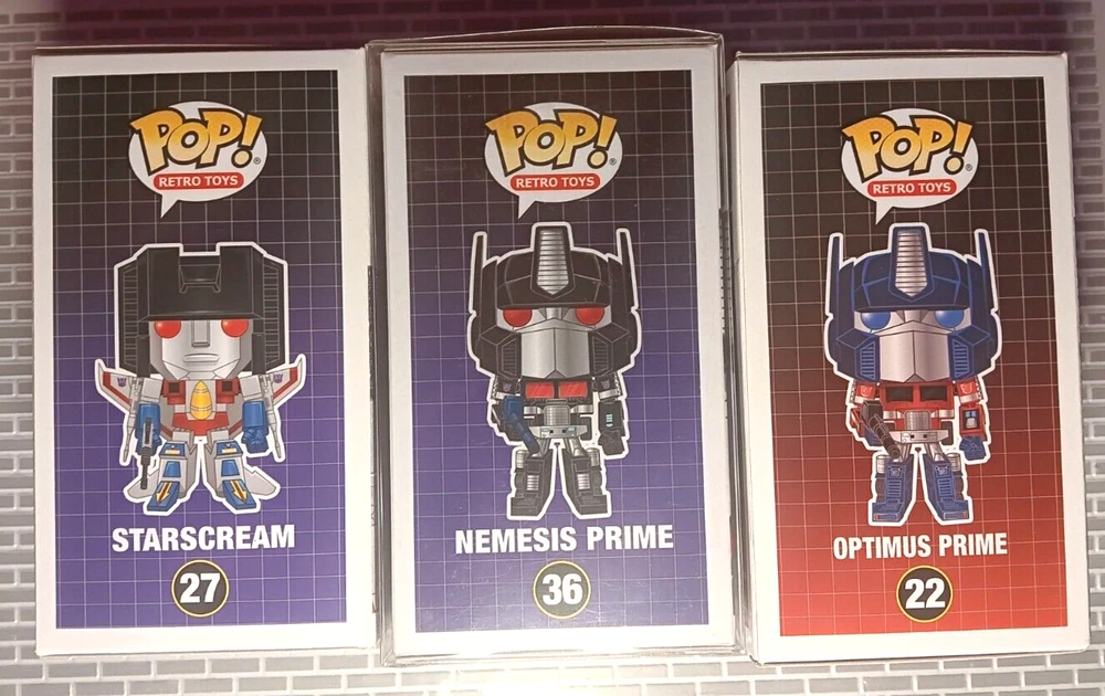 Starscream #27 Target, Nemesis Prime #36 Funko Limited Edition, and Optimus Prime #22 The multicolor vinyl material is of high quality and the design is exclusive to Funko. This item is part of the 2020 Fw 12 Days of Christmas series and comes in box number 36. The Pop! Vinyl figure is a great addition to any collection, with its vaulted status and exclusive retailer. The model is called Optimus Prime Nemesis Prime Starscream and is part of the Funko collection. This collectible figure is perfect for fans of the Transformers and is a great gift for any collector. Brand-new, unused, unopened, item in its original packaging. Figure hasn't been taken out of the box. Pop! Television Series Stands 3 3/4 Inches Tall Be sure to checkout all of my other Funko Pops Available!