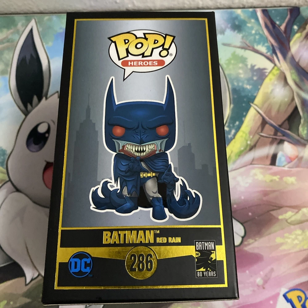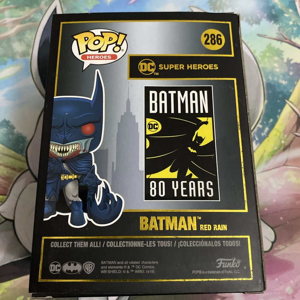Step into the world of DC Universe with the Funko Pop! Vinyl: Red Rain Batman (Count Dracula) figure, a must-have for any avid collector. This stylized vinyl figure captures the essence of the iconic superhero, set against the gothic allure of Count Dracula's red rain-themed aesthetic. The piece hails from the celebrated Batman's 80th series, celebrating the character's rich history within the comics realm. Crafted with care, this collectible features the vivid red color synonymous with danger and excitement, bringing a pop of color to any display. As a part of the sought-after Pop! Vinyl collection from Funko, this figure stands as a tribute to the timeless appeal of Batman and his enduring legacy within the comics franchise. Whether for display or as part of a larger collection, this piece is an homage to the character's enduring charm.