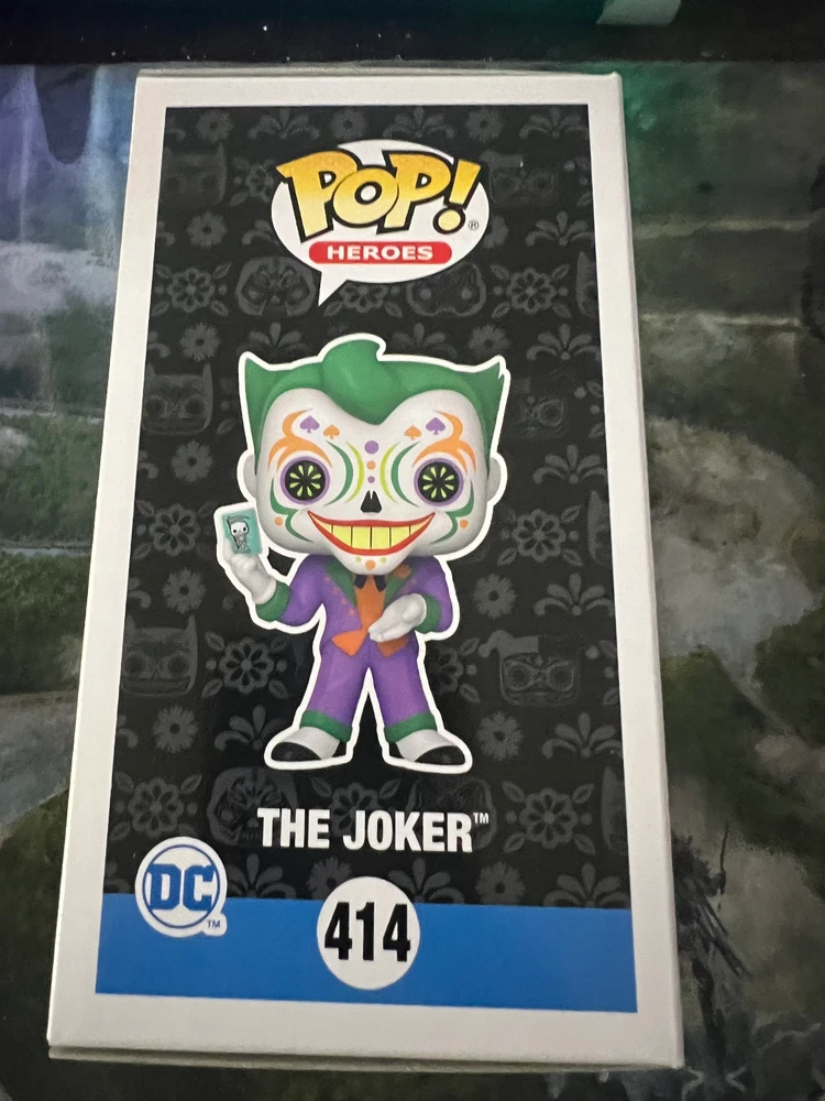 Dive into the vibrant DC Universe with the Funko Pop! Vinyl: DC Universe - The Joker #414. This collectible figure captures the iconic villain in his Dia De Los DC attire, bringing a touch of the comics' festivity to your shelf. The Joker is rendered in Funko's signature stylized form, making it a must-have for fans of the franchise and Pop! Vinyl collectors alike.Crafted from durable vinyl material, this figure stands out with its attention to detail and vibrant colors that celebrate the character's role in the comic book realm. Whether you're a dedicated follower of the series or a casual collector, this piece serves as a playful nod to the Joker's legacy within the expansive DC Universe.