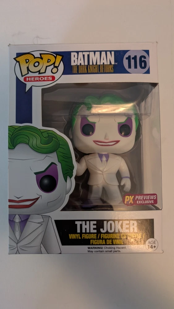 Step into the world of Gotham with the Funko Pop! Joker figure from the Dark Knight Returns series. This exclusive #116 vinyl collectible, still in its original unopened packaging, captures the iconic villain in his classic multicolor attire, poised to bring a touch of chaos to your collection. With its release in 2016, this piece has become a must-have for fans of the DC Universe and Funko collectors alike. Crafted with care, the figure stands at 7 inches and is part of the Pop! Vinyl product line. It's a non-customized, standard-sized item that fits perfectly on shelves or desks, making it an ideal addition for both serious collectors and casual fans. Celebrate your love for the Dark Knight and the Joker with this unique Diamond Comics exclusive that stands out in any collection.